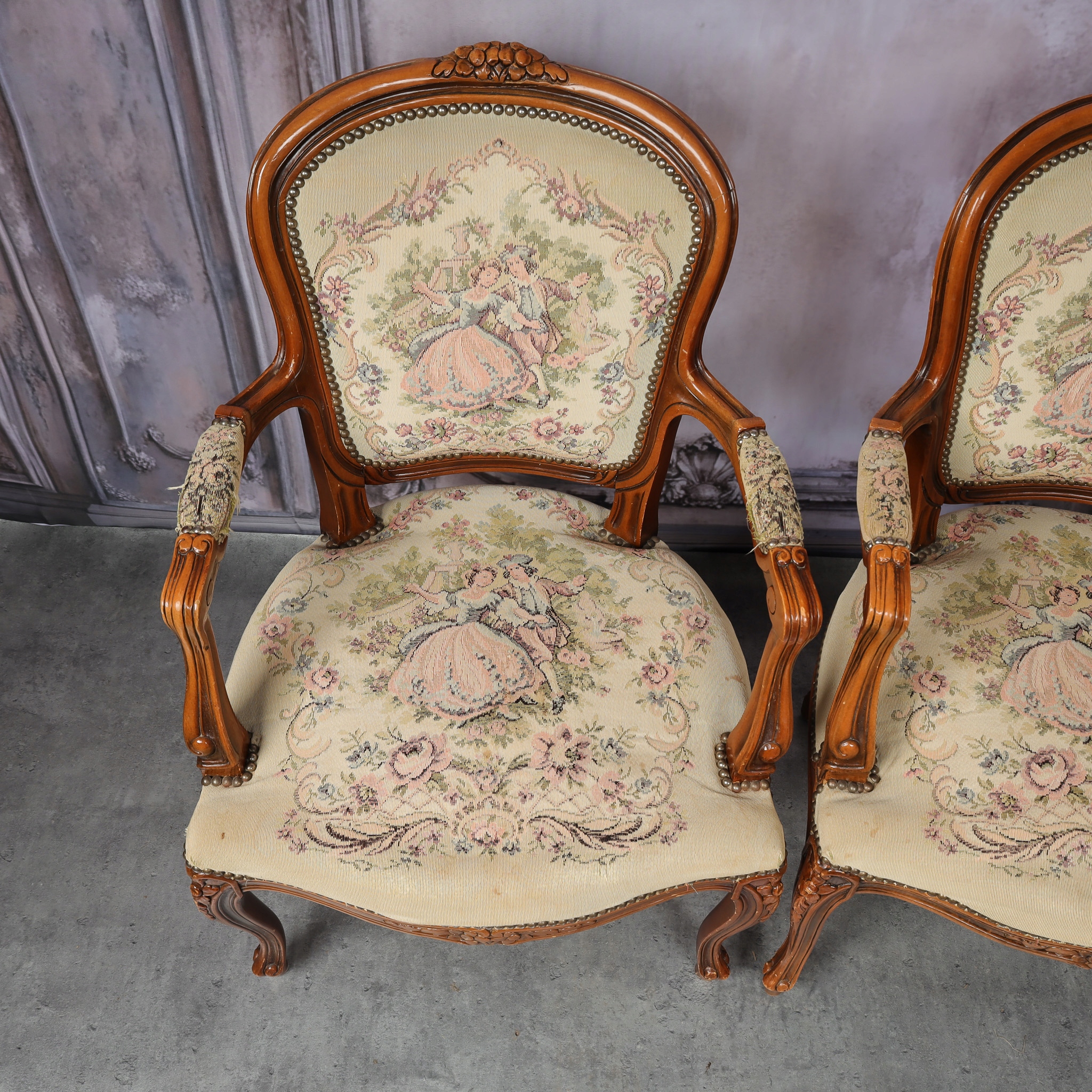 Пара крісел у стилі Людвіка з оббивкою гобеленів - для реконструкції