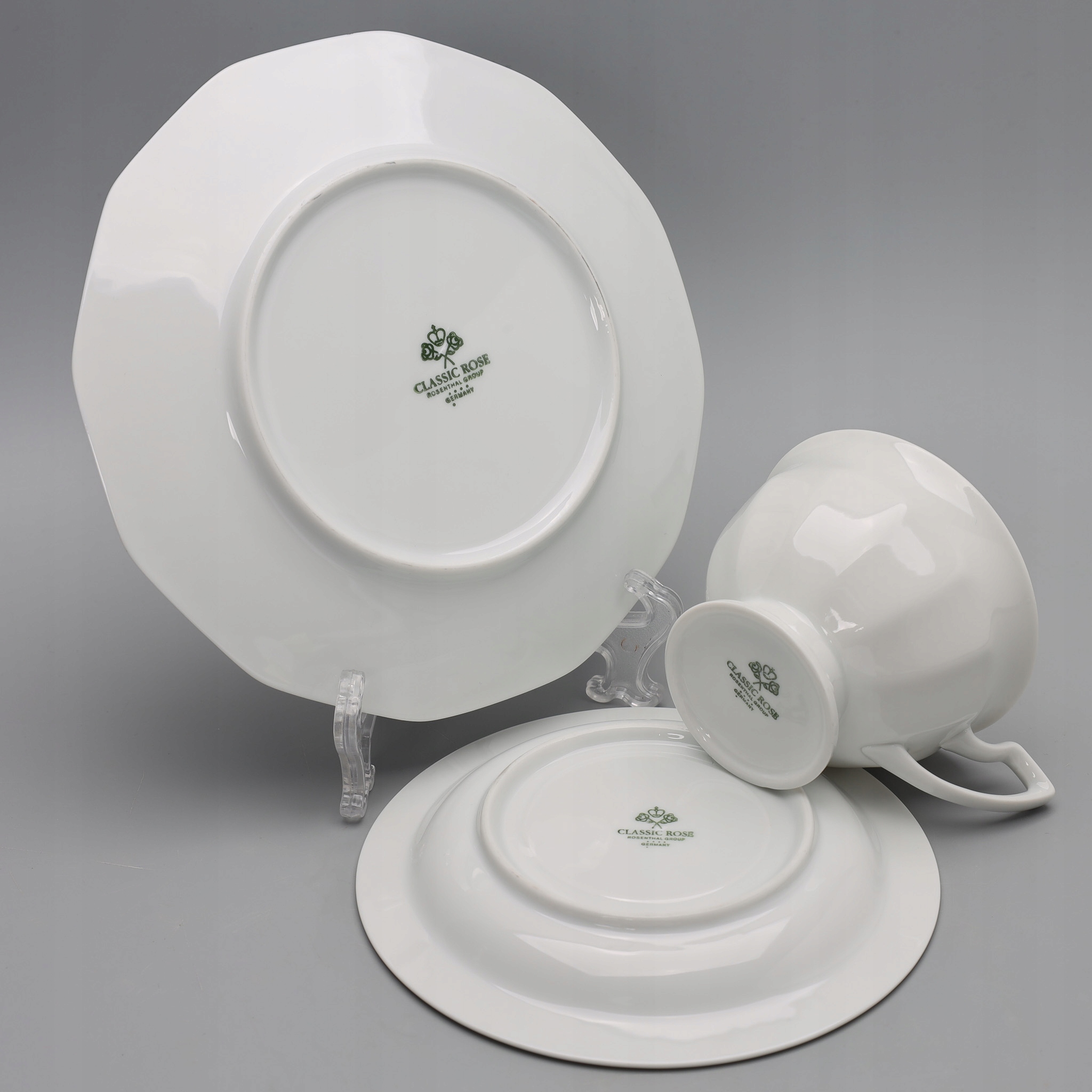 Набір із підписом мануфактури, який видно на фотографіях (один надріз на підписі). Знак «CLASSIC ROSE ROSENTHAL GROUP GERMANY» використовувався компанією Rosenthal з 1970-х до початку 1990-х років.