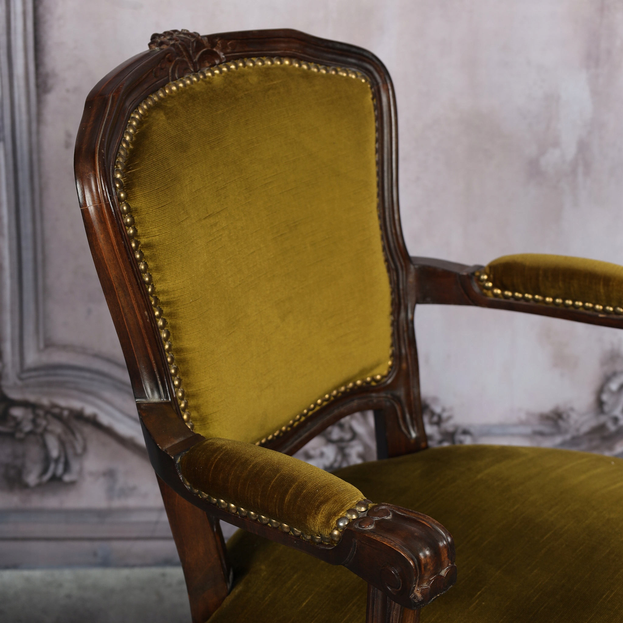 Пориньте у виняткову елегантність і комфорт із нашим представницьким кріслом Ludwik. Це ідеальний предмет меблів для тих, хто цінує класичний стиль і високий комфорт. Крісло має красивий різьблений дерев’яний каркас і високоякісну оббивку, яка додає йому елегантності та характеру.