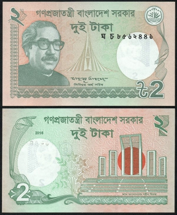$ BANGLADESH 2 Такі P-52E UNC 2016