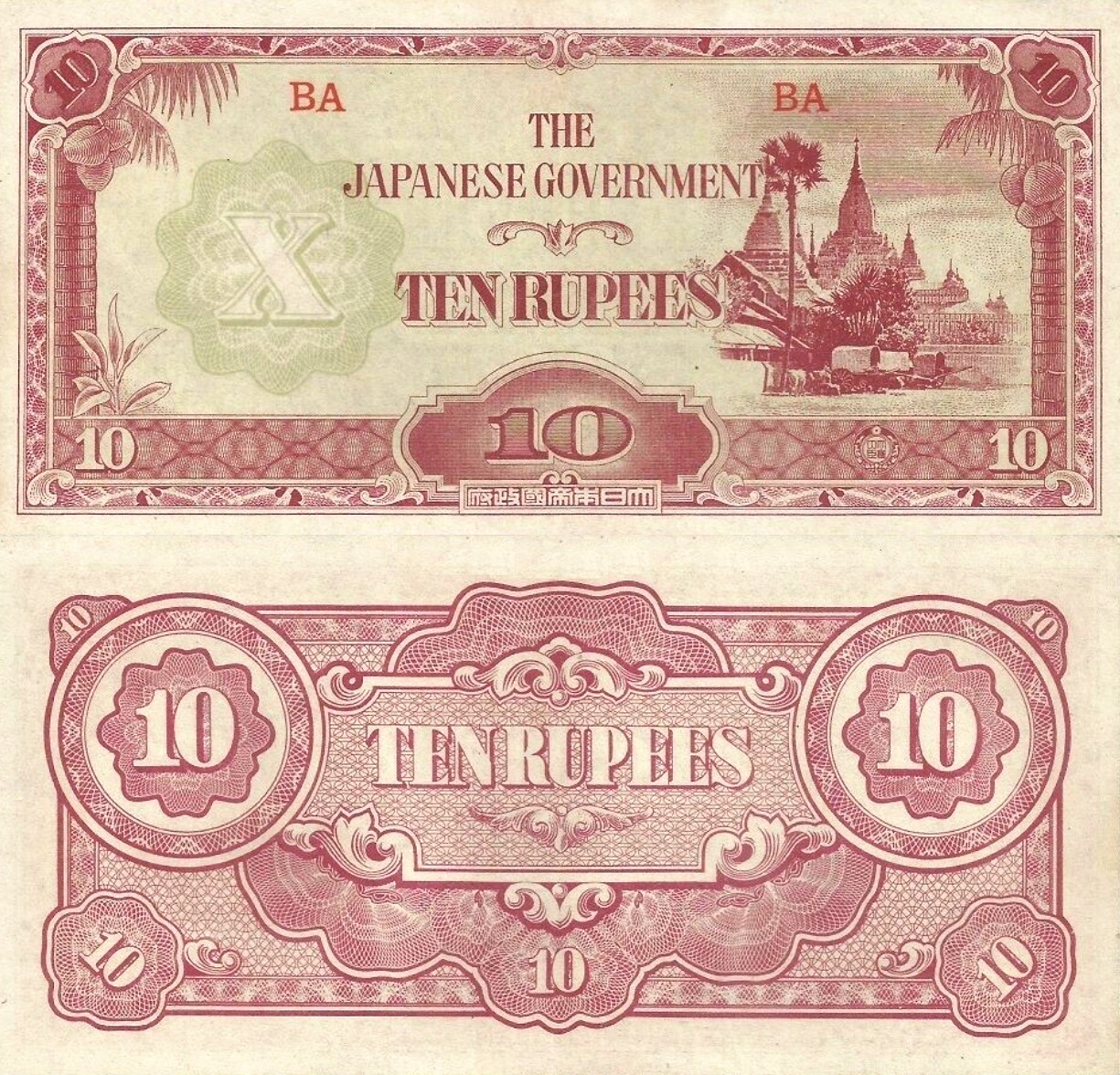 # БІРМА - 10 РУПІЙ - 1942-44 - P-16b - UNC