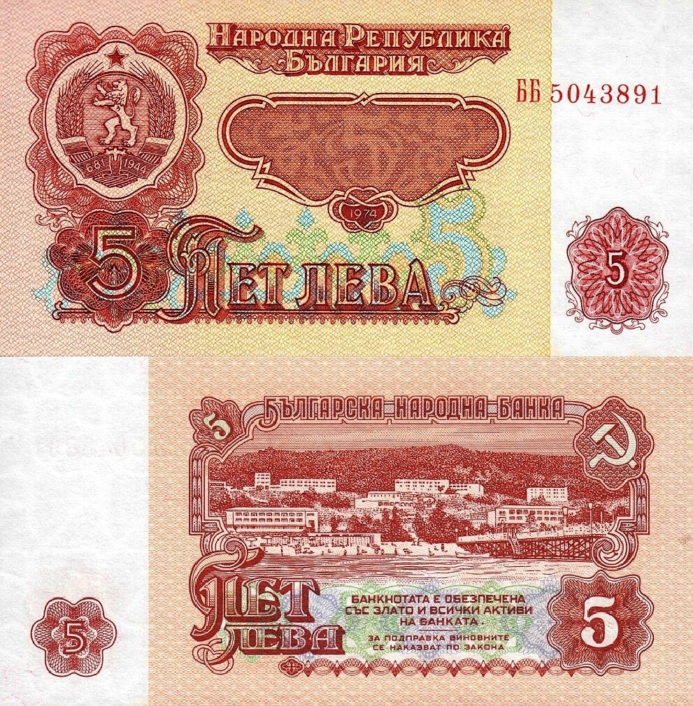 # БОЛГАРІЯ - 5 ЛЕВІВ - 1974 - P-95 - UNC