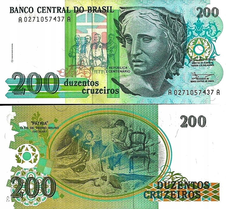 # БРАЗИЛІЯ - 200 CRUZEIROS - 1990 - P-229 - UNC