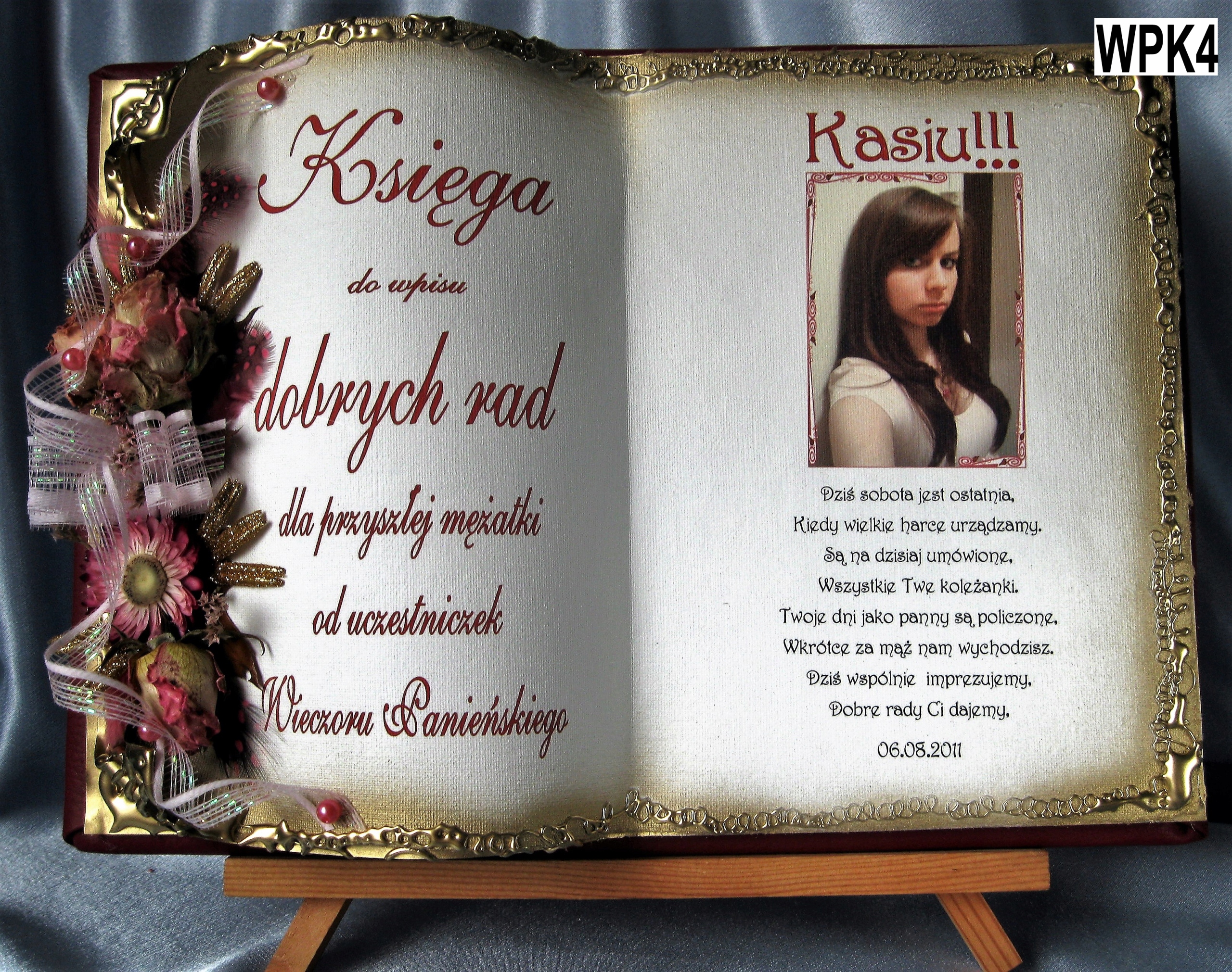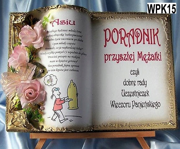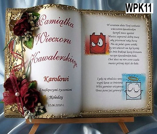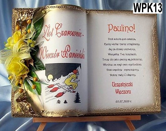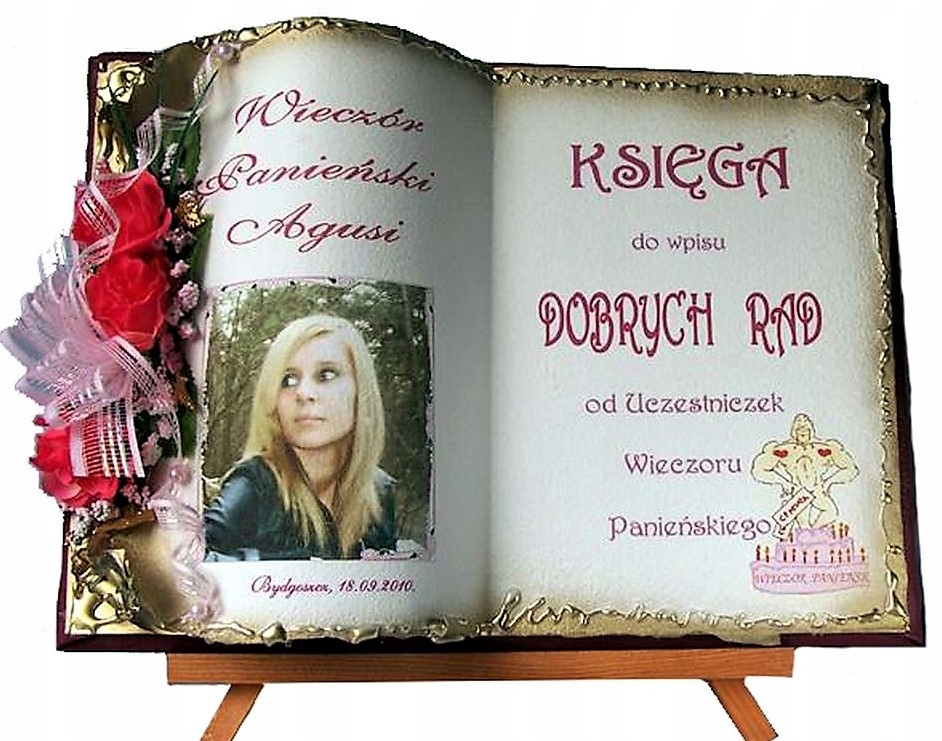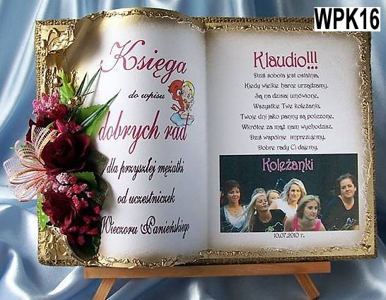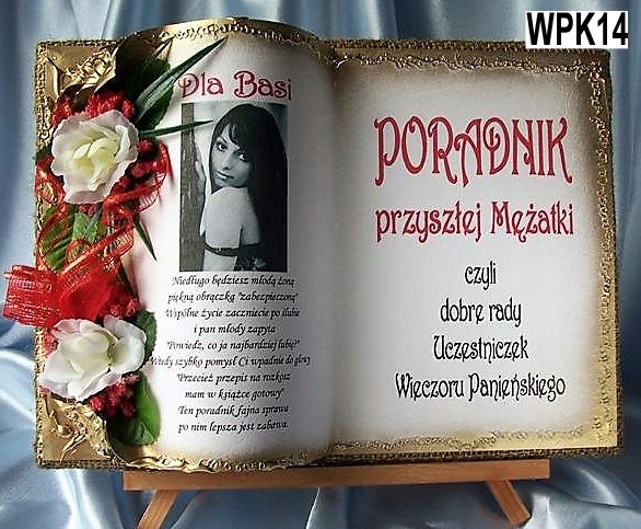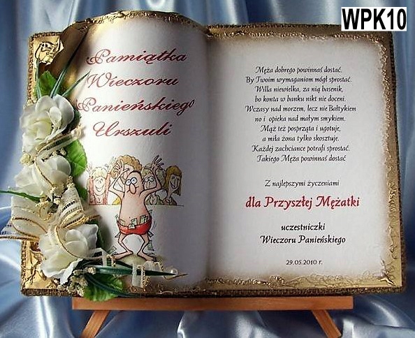 у вигляді книжки для особливих подій, яку ми виготовляємо повністю вручну в техніці колажного просторового оформлення - художнє рукоділля, красиво упакований, з віршем на головній сторінці, цитатою, персоналізацією, датою вечора, можливо містом або за вашою інструкцією, можемо налаштувати домашню сторінку - включаючи графіку та будь-які написи. Ми прикрашаємо все гарною об’ємною композицією з тканинних квітів.