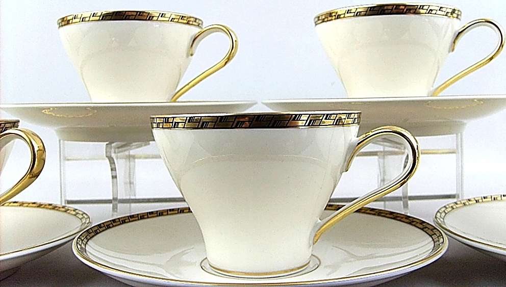 # EDELSTEIN, 1927 - 72 - FILIŻANKI + SPODKI, 5 kompletów, EKRU
