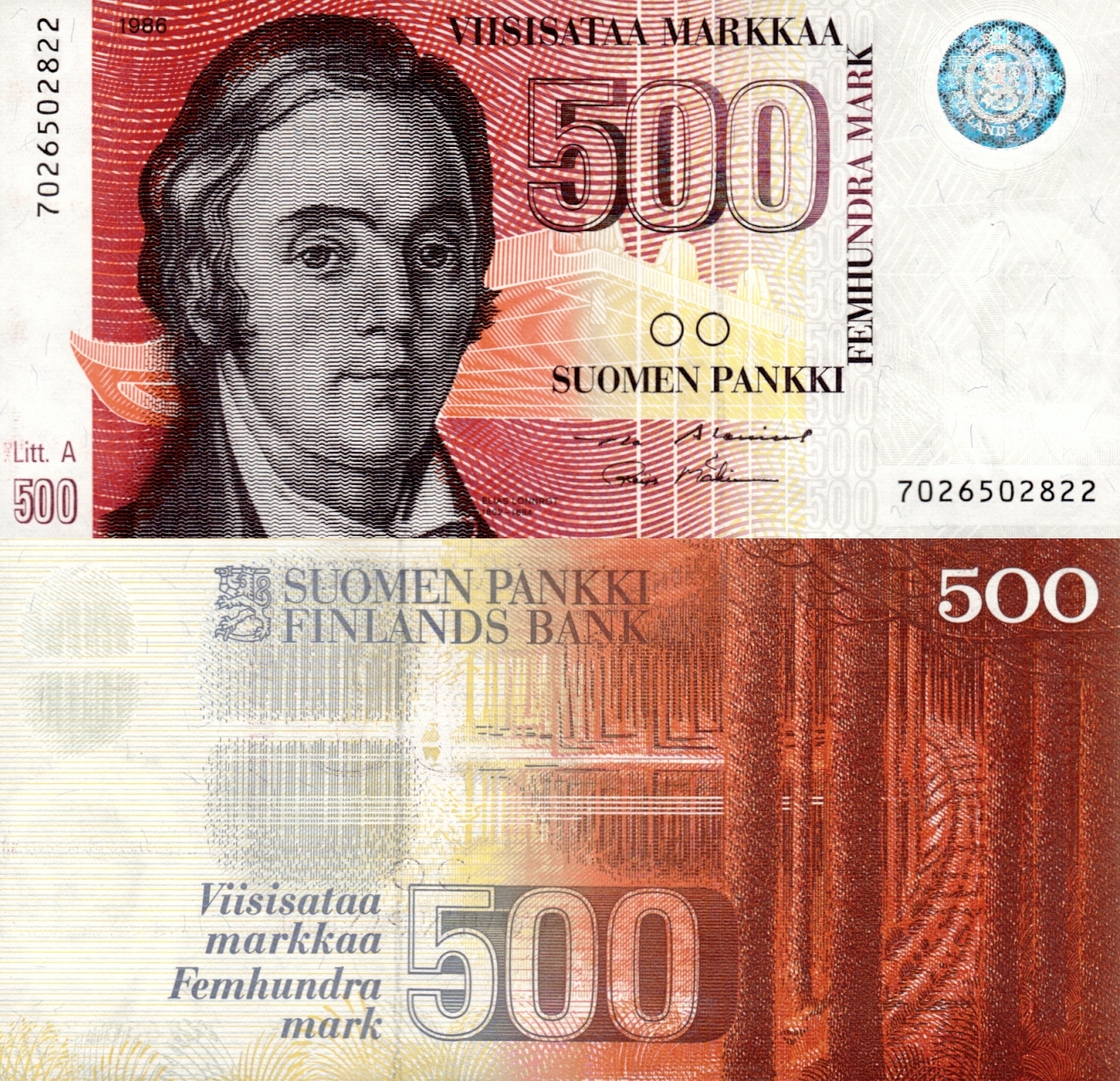 # ФІНЛЯНДІЯ - 500 МАРОК - 1986 - Р-120 - XF+