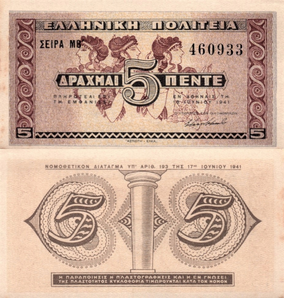 # ГРЕЦІЯ - 5 ДРАХМ - 1941 - P-319 - UNC-