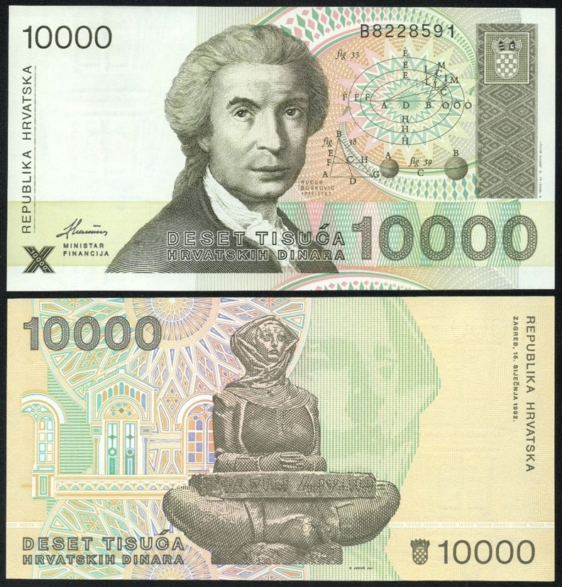 $ Хорватія 10000 DINARA P-25a UNC 1992