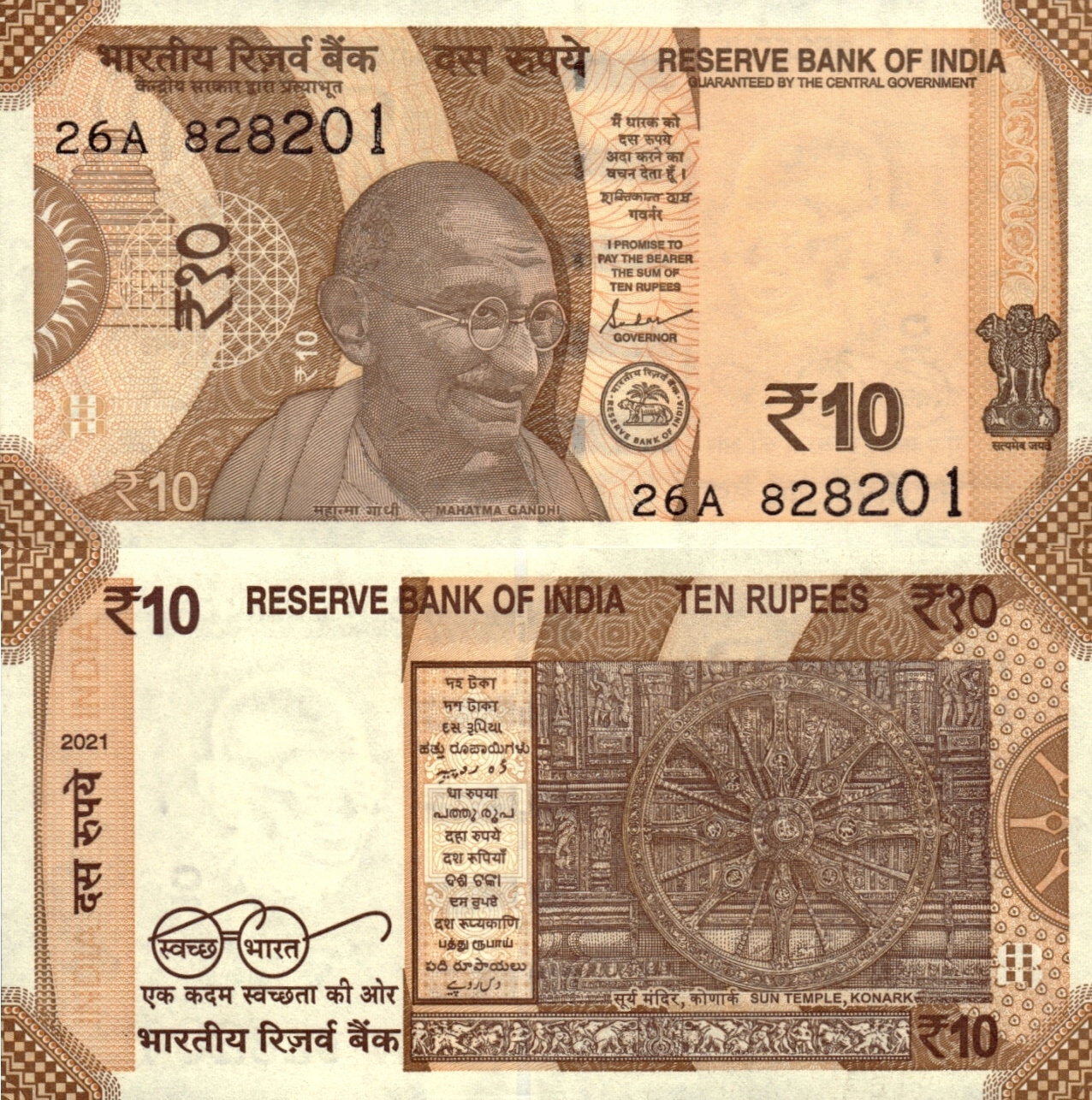# ІНДІЯ - 10 РУПІЙ - 2021 - P-109 - UNC номер 828282