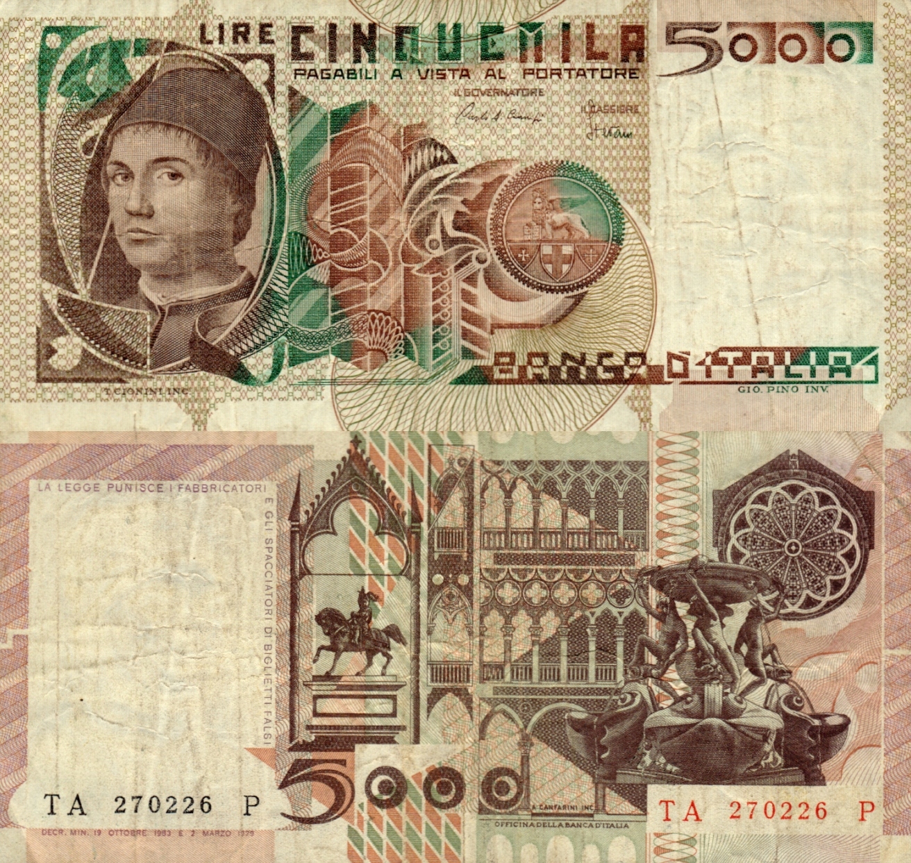 # ІТАЛІЯ - 5000 ЛІР - 1983 - P-105c - VF-