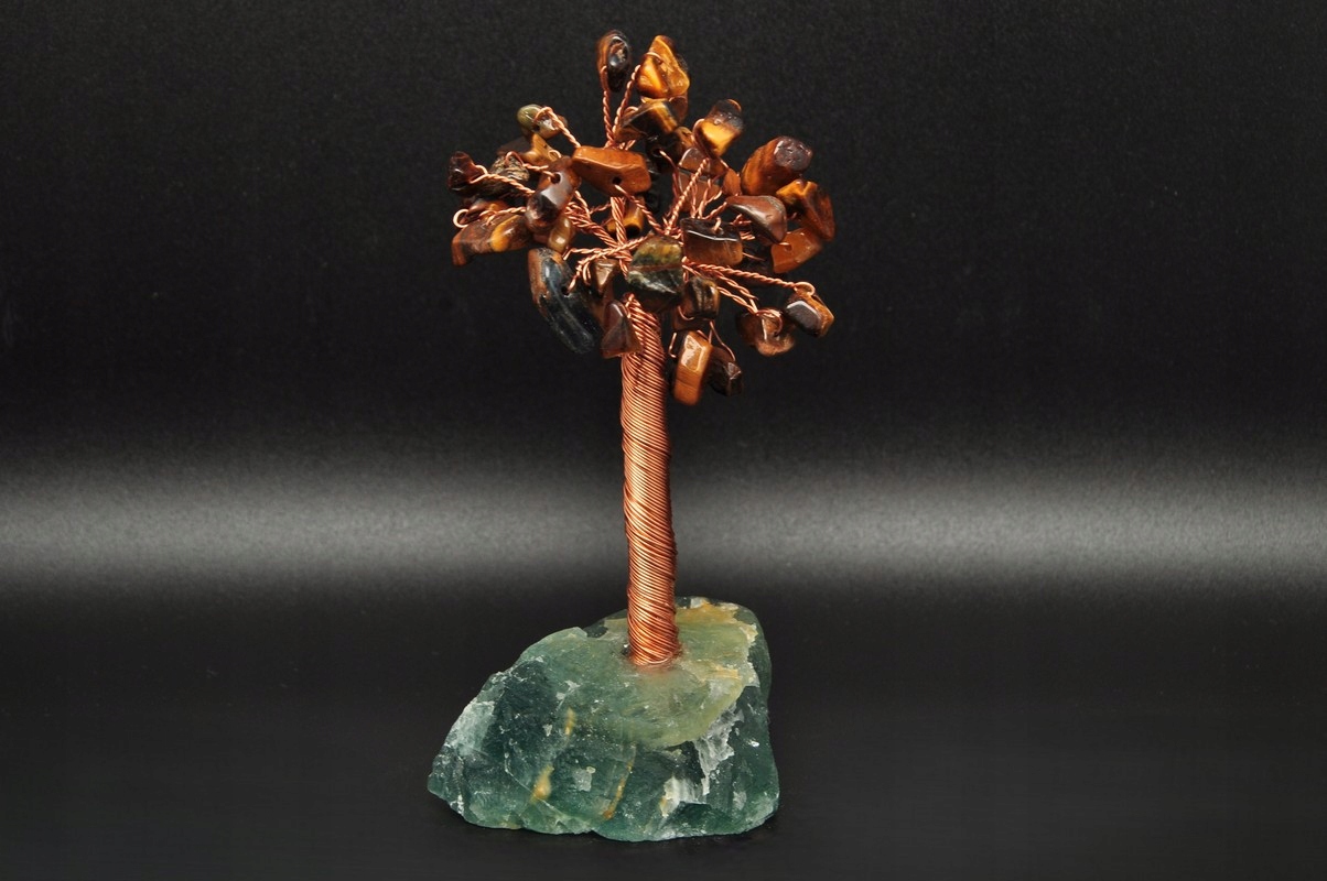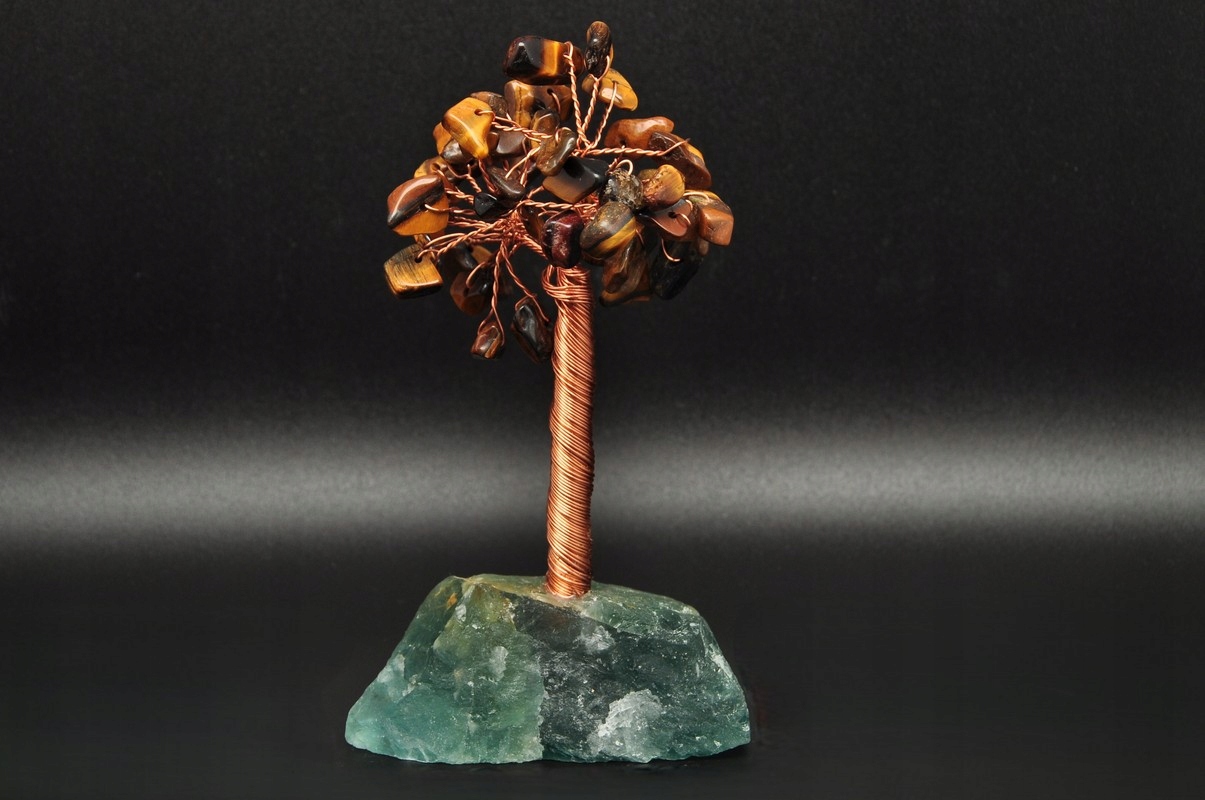 Дерево щастя - фтор, тигрове око. природний мінерал з інтенсивним кольором, ідеально підходить як подарунок і для прикраси.