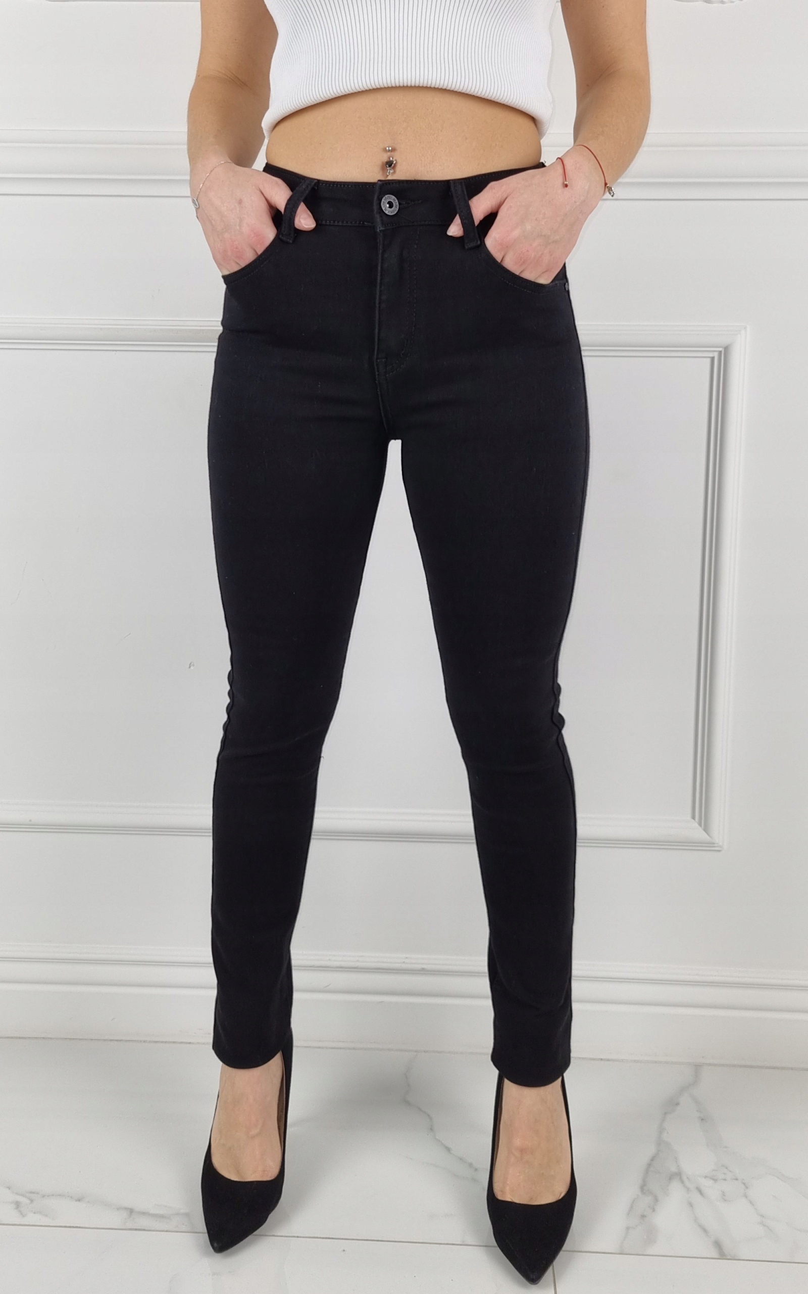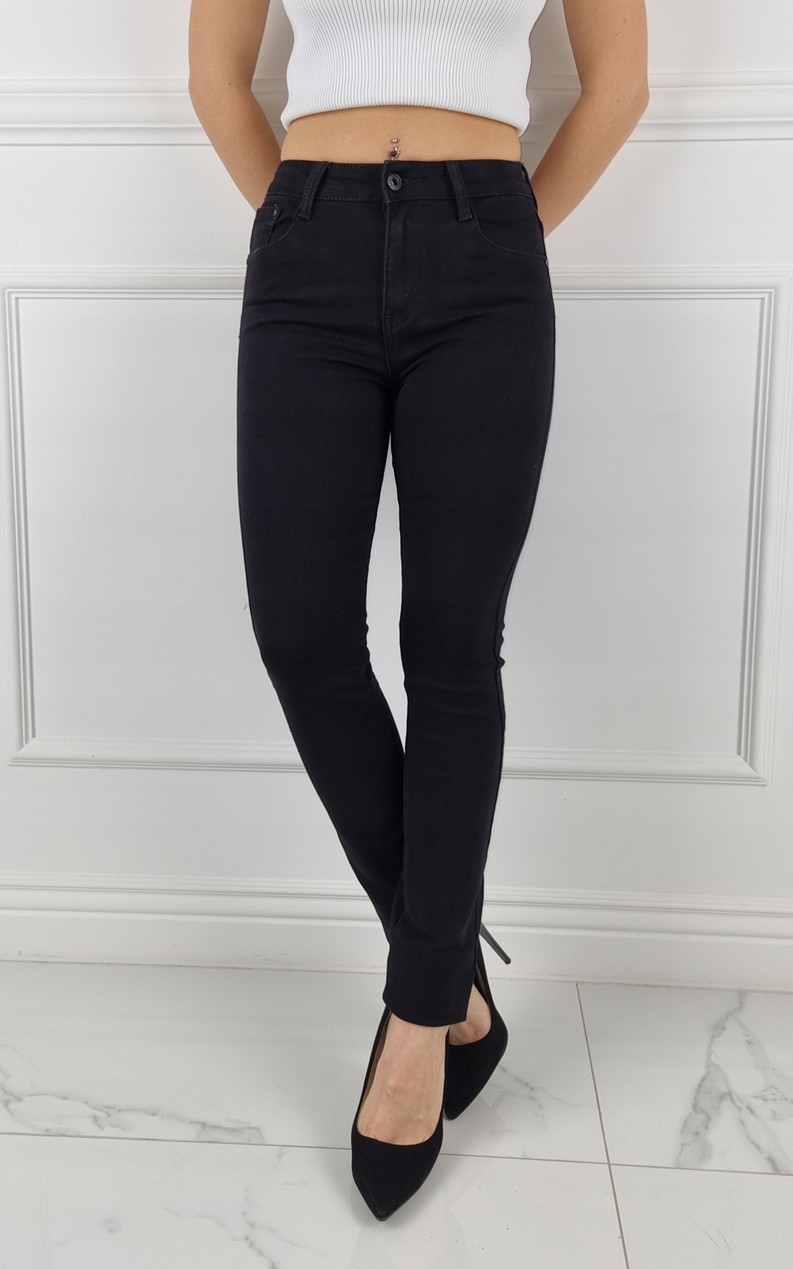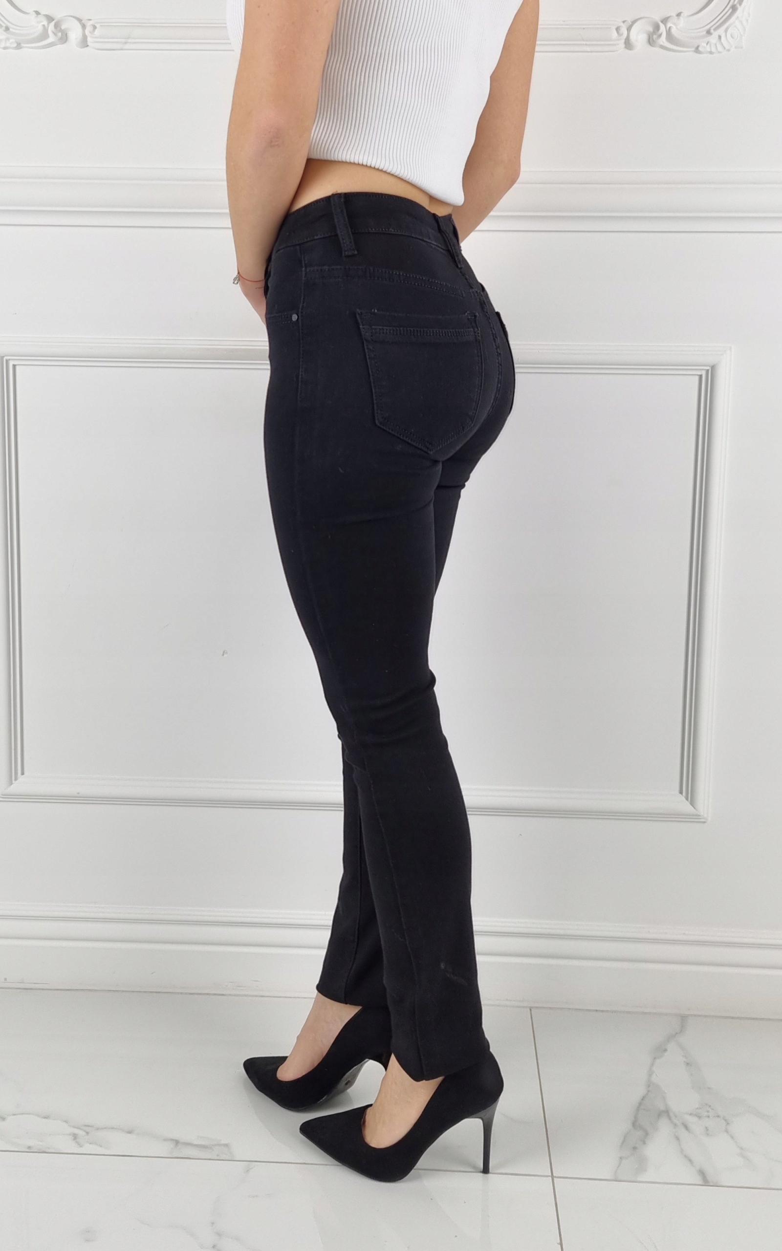 Чудові чорні класичні штани, середня талія. Чудові для спортивного взуття, але вони також ідеальні в поєднанні з високими підборами, завдяки своїй універсальності підходять практично до будь-якого стилю. Гнучкий матеріал підкреслює жіночу фігуру. Штани приталені та стрейч. Підкресліть свої жіночі форми! Зробіть свій повсякденний образ унікальним. Штани мають кишені з обох боків.