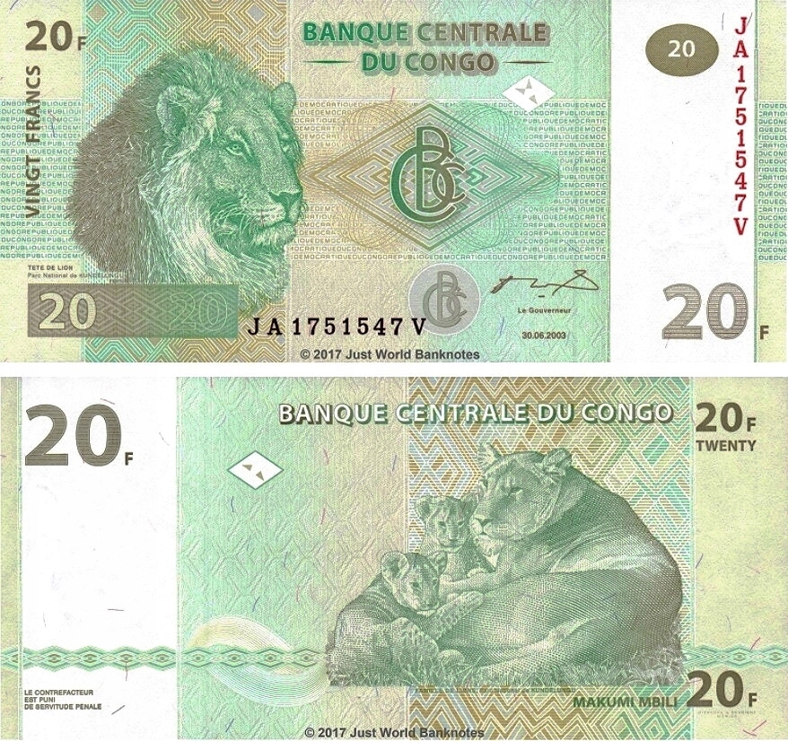 # КОНГО ДР - 20 ФРАНШІВ - 2003 - P-94a - UNC (Giesecke)
