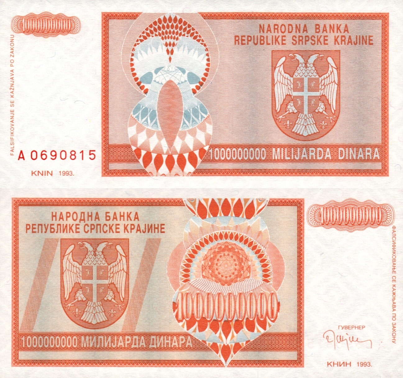 КРАЙНА / ХОРВАТІЯ / SRPSKE KRAJINE - 1000000000 ДИНАРІВ