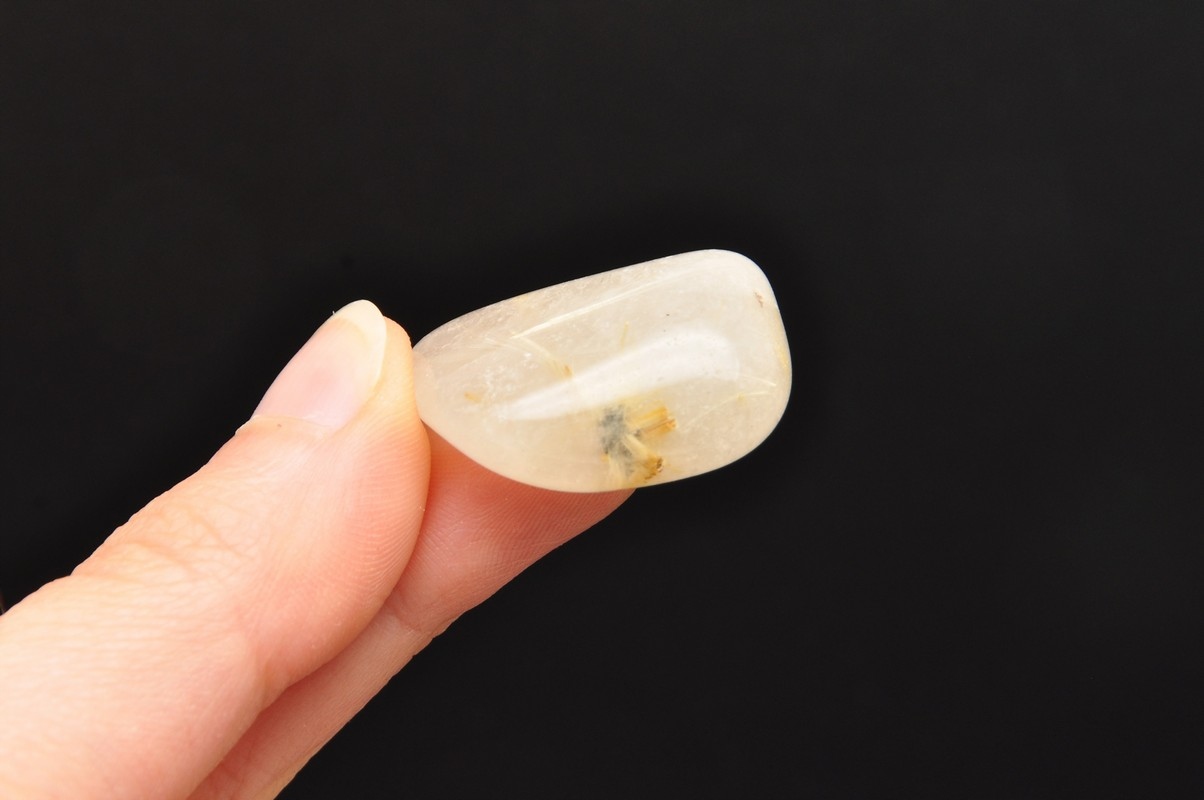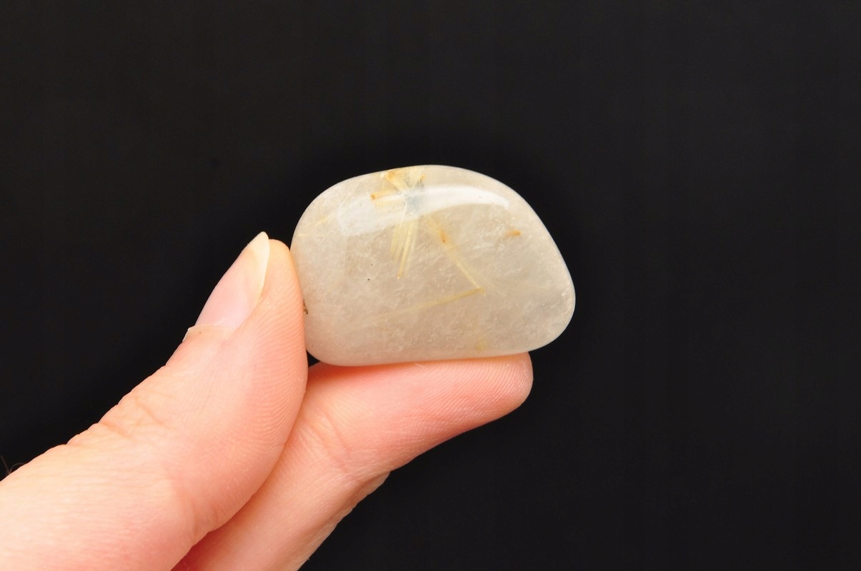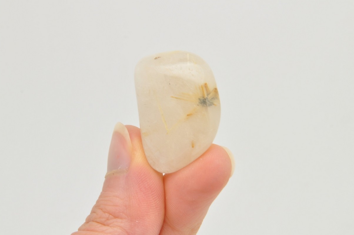 натуральний кварц з маршрутом . Красиві, голкові включення рутилу в кварц. Зразок, схожий на барабан, чудова якість. Ідеально підходить для руки, для колекції.