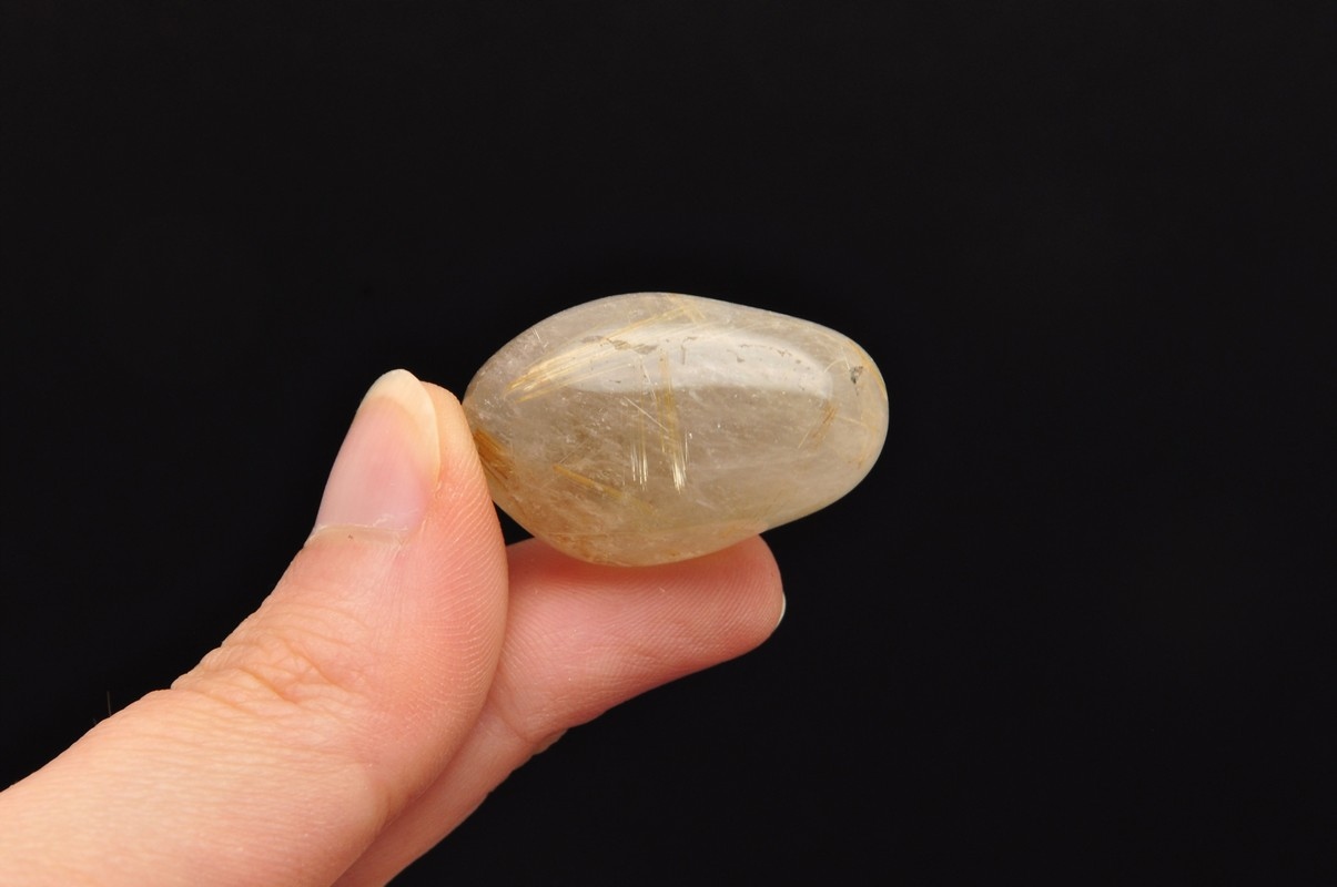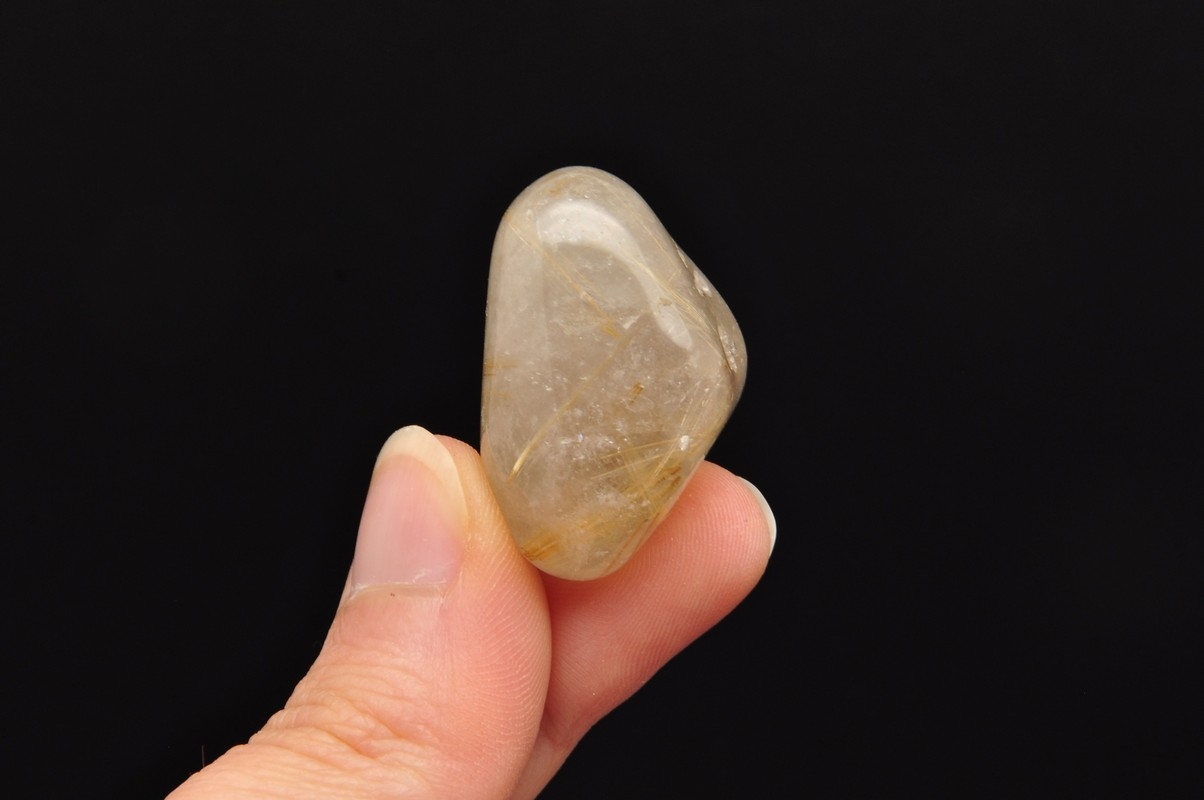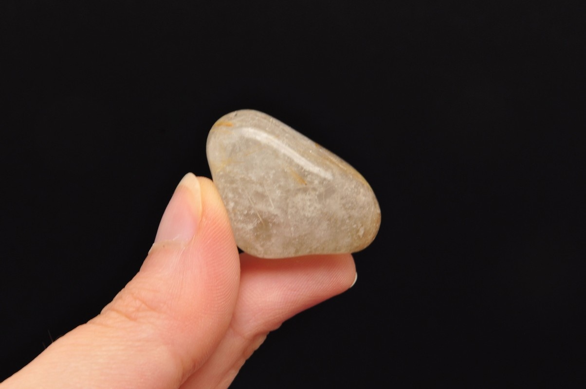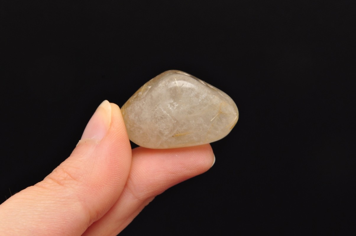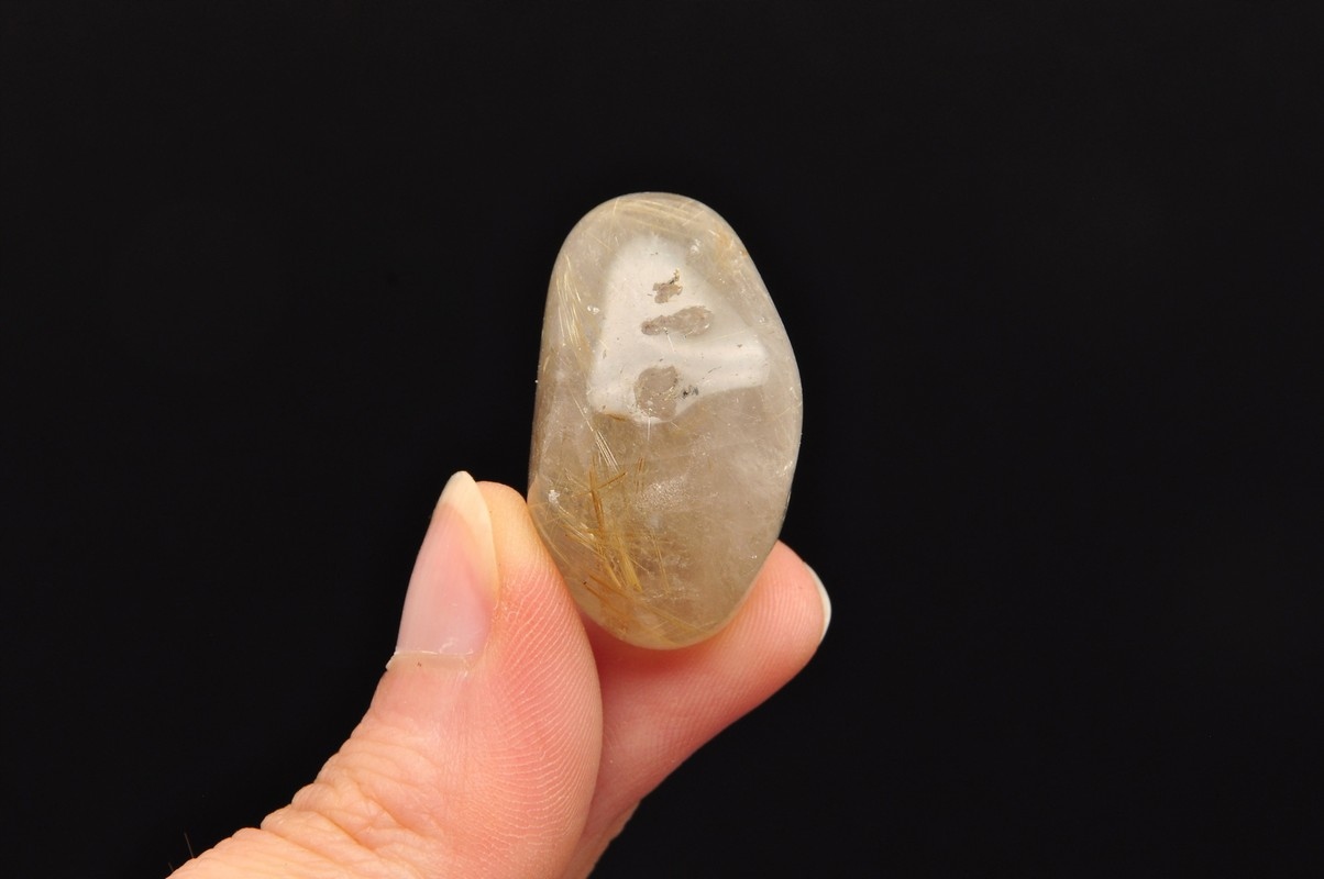 натуральний кварц з маршрутом . Красиві, голкові включення рутилу в кварц. Зразок, схожий на барабан, чудова якість. Ідеально підходить для руки, для колекції.