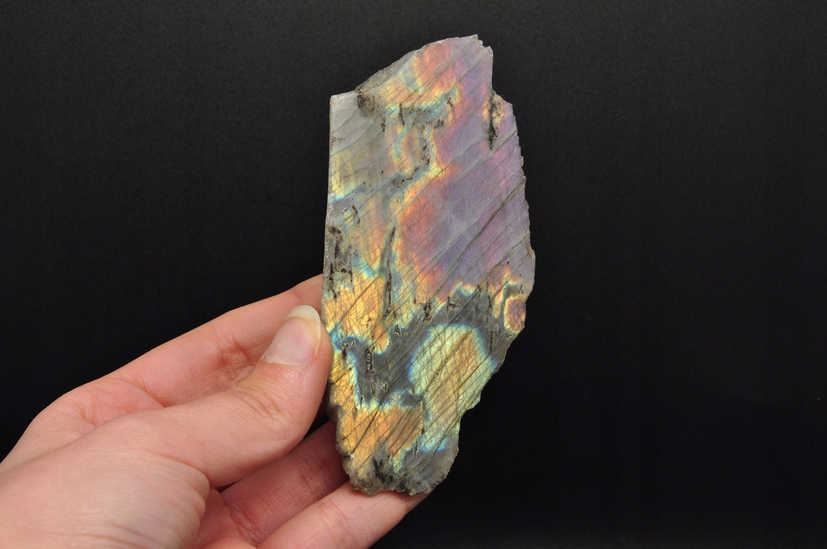 натуральний labradoryt ідеально підходить для колекції та для подарунка. Зазначений екземпляр одного -діапазону, з іншого боку, сирого каменю. Він має прекрасний ефект лабрадоризації.