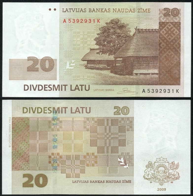 $ Латвія 20 РОКІВ P-55b UNC 2009