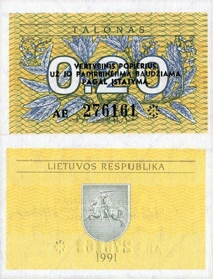 # ЛИТВА - 0,20 TALONAS - 1991 - P-30 - UNC