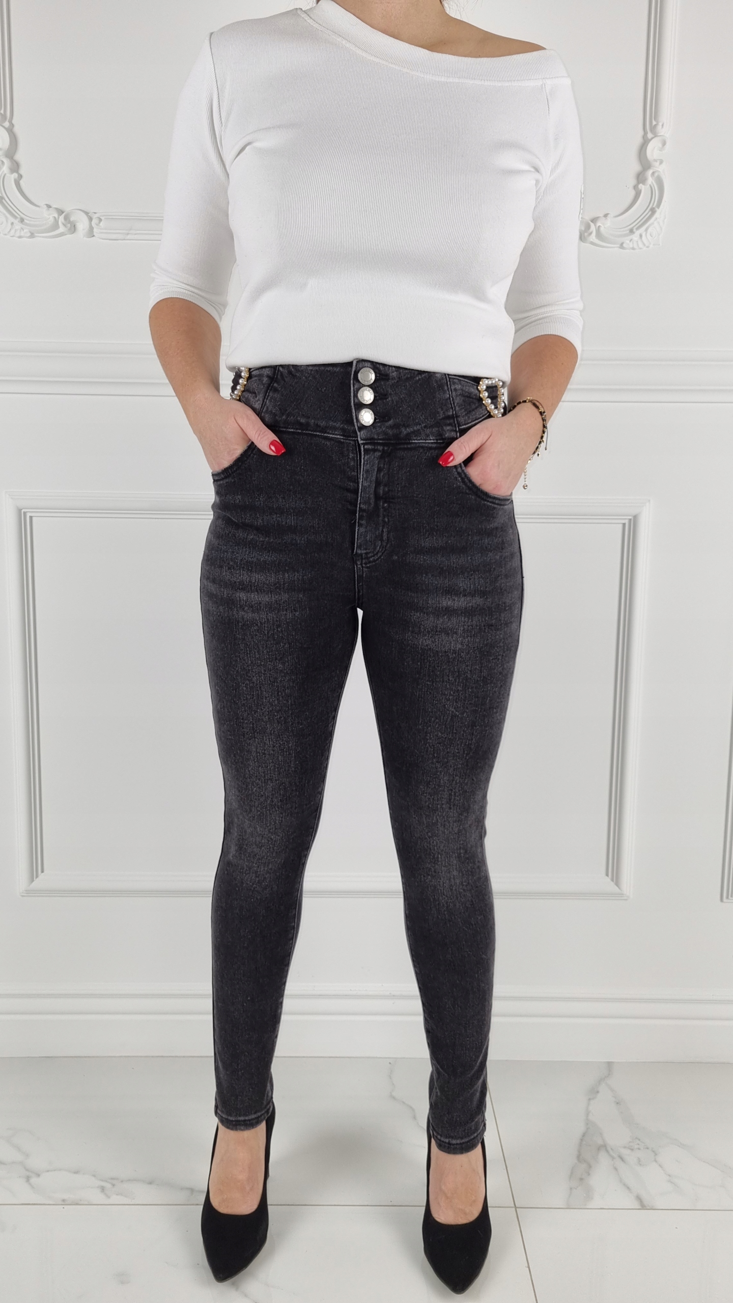Чудові джинсові штани від відомої компанії M.SARA - ОРИГІНАЛ з Висока талія і гудзики Чудово підходять до спортивного взуття, але також чудово поєднуються з туфлями на підборах, завдяки своїй універсальності підходять практично до будь-якого стилю. Гнучкий матеріал підкреслює жіночу фігуру. Штани приталені та стрейч. Підкресліть свої жіночі форми! Зробіть свій повсякденний образ унікальним. Штани мають кишені з обох боків.