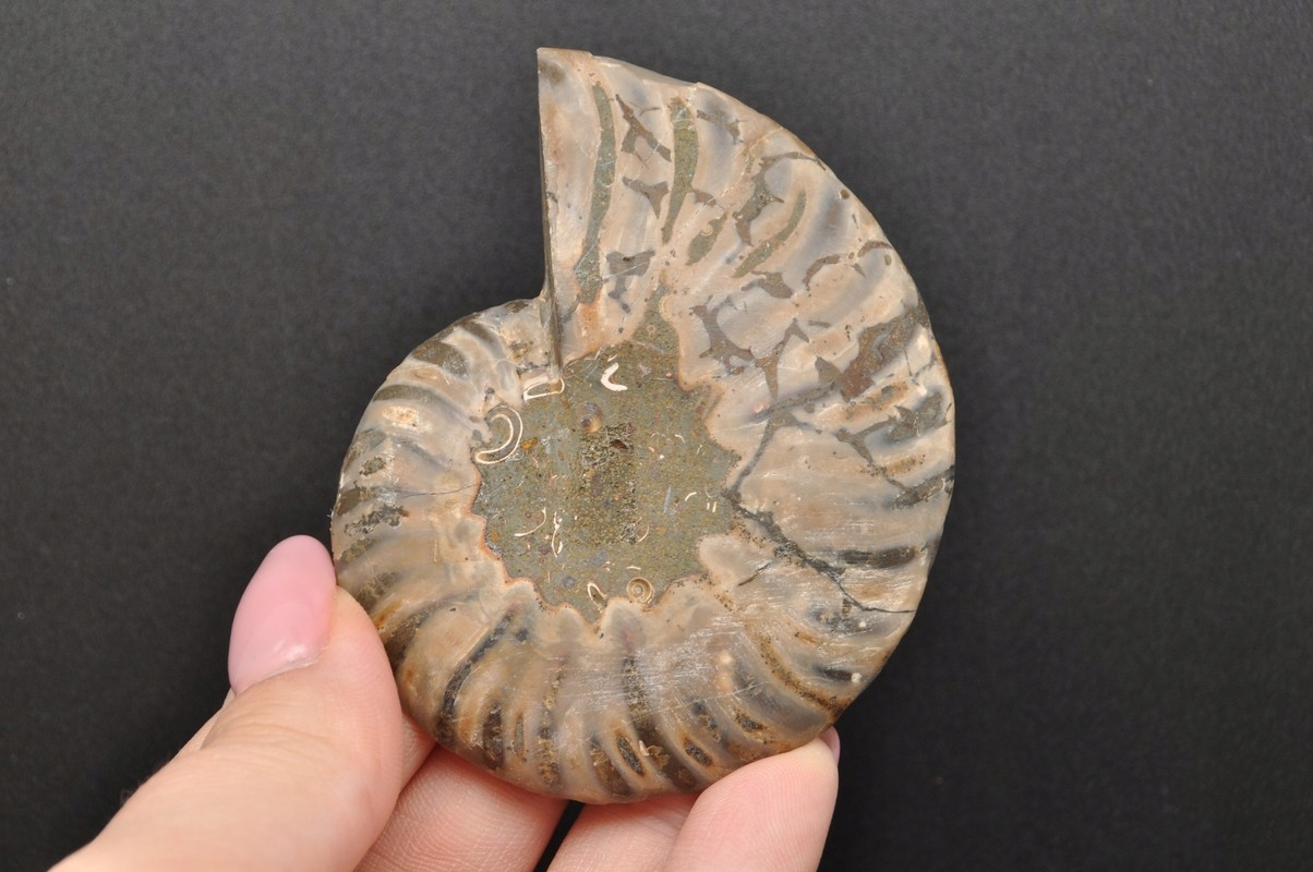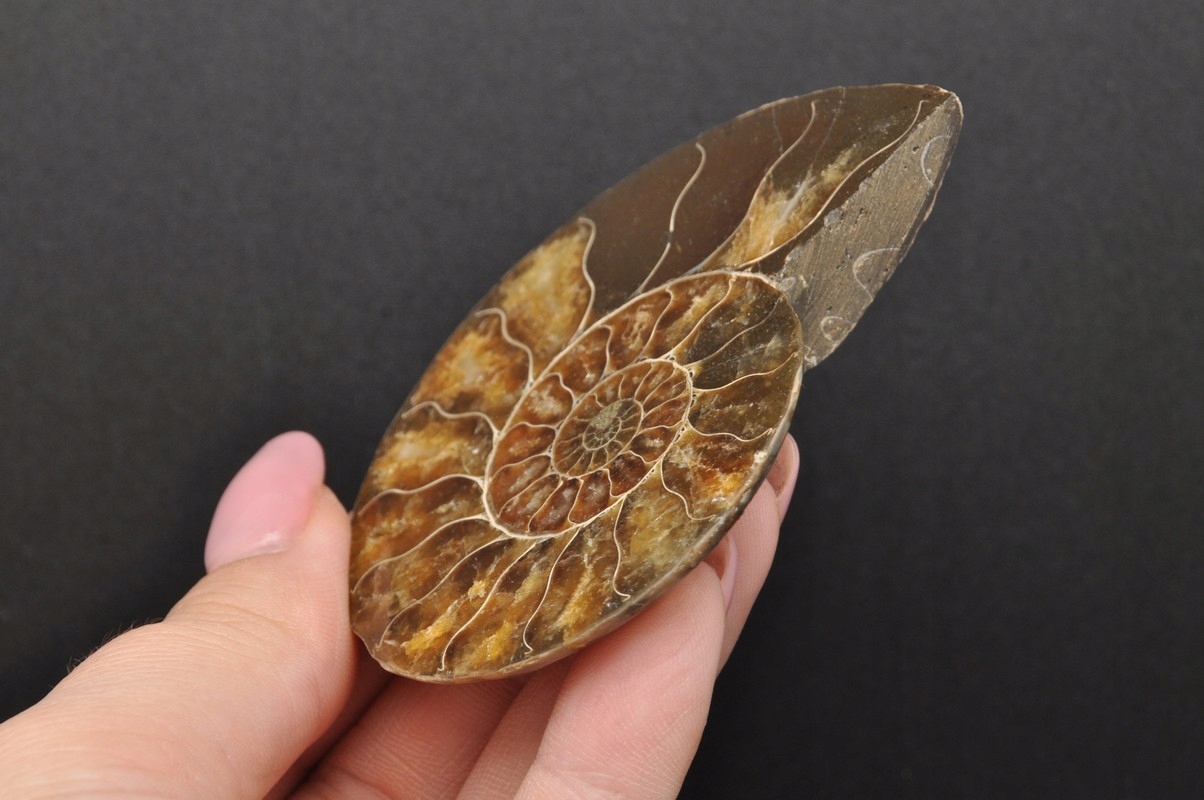 ПОЛОВИНА АМОНІТУ, ПРАЙДОВО ЗБЕРЕЖЕНИЙ ЗРАЗОК. ЦЕ ВИКОПАЛИВОСТІ З МАДАГАСКАРУ, ДАТУВАНІ ПЕРІОДОМ НИЖНЬОГО КРАЦЕТАГО. УНІКАЛЬНИЙ ЕКЗЕМПЛЯР, ОДНІЙ СТОРОНА ВИРІЗАНА ТА ВІДПОЛІРОВАНА.