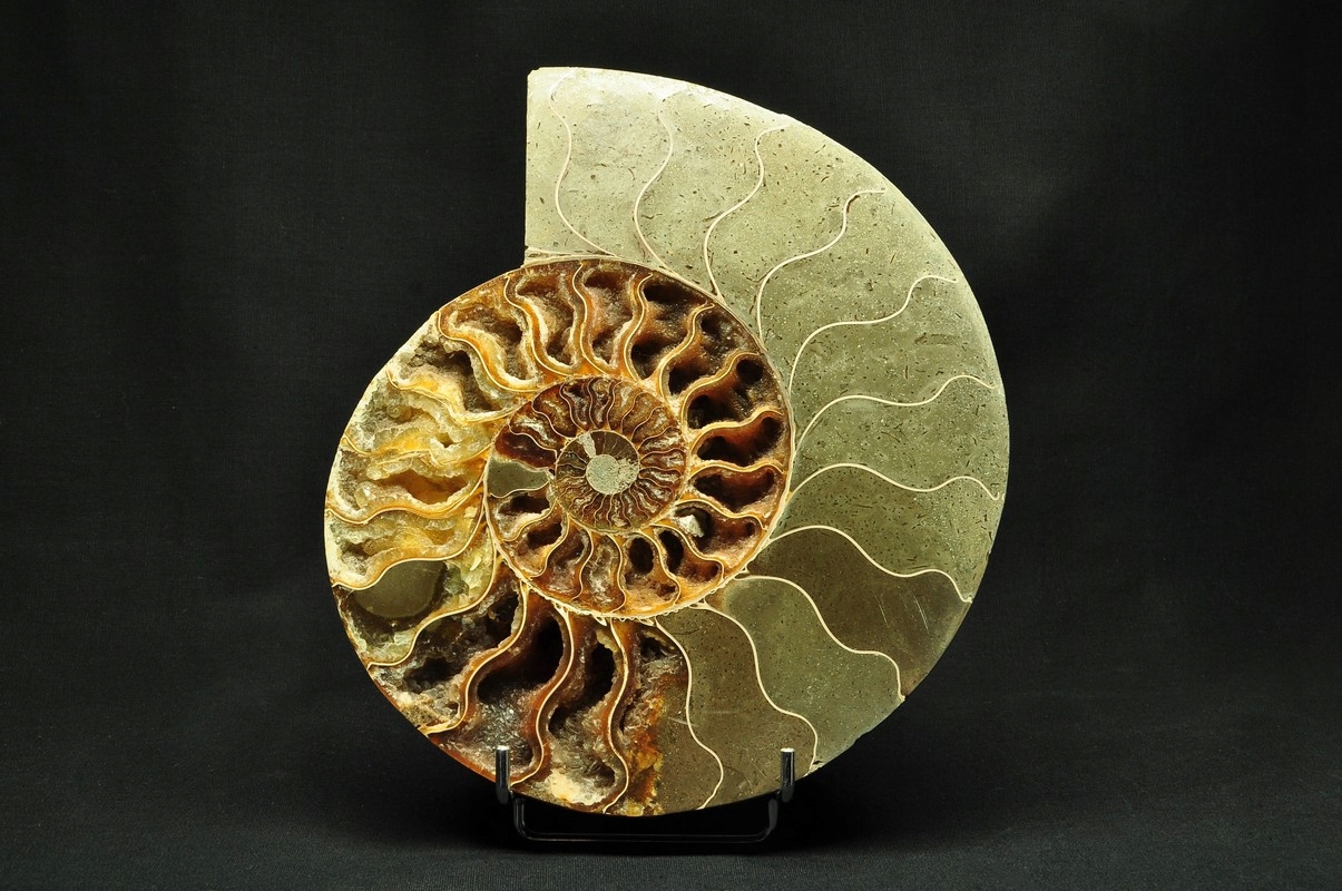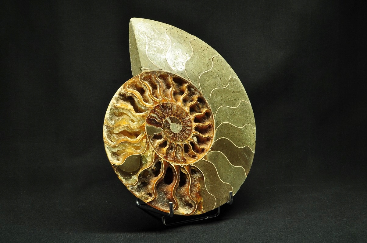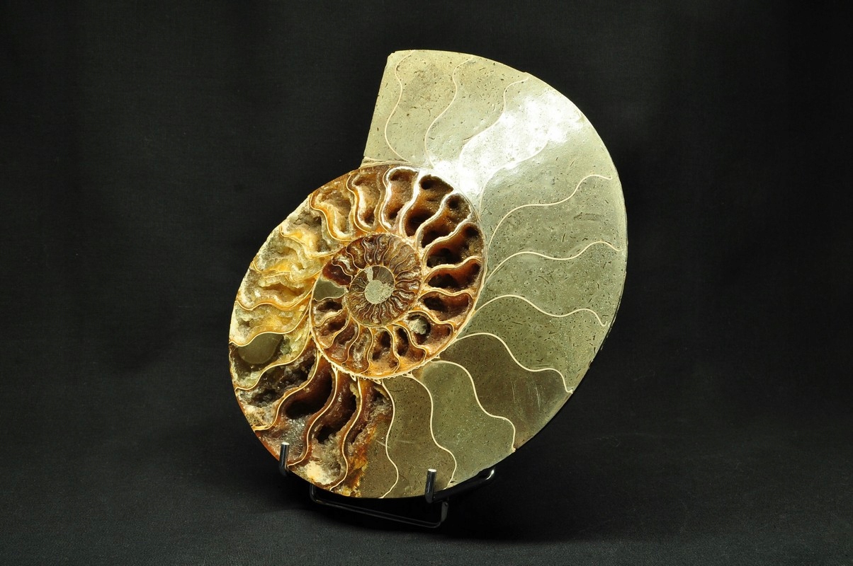 ПОЛОВИНА АМОНІТУ, ПРАЙДОВО ЗБЕРЕЖЕНИЙ ЗРАЗОК. ЦЕ ВИКОПАЛИВОСТІ З МАДАГАСКАРУ, ДАТУВАНІ ПЕРІОДОМ НИЖНЬОГО КРАСЕТАГУ. УНІКАЛЬНИЙ ЕКЗЕМПЛЯР, ОБРІЗАНИЙ ТА ВІДПОЛІРОВАНИЙ З ОДНОГО БОКУ.