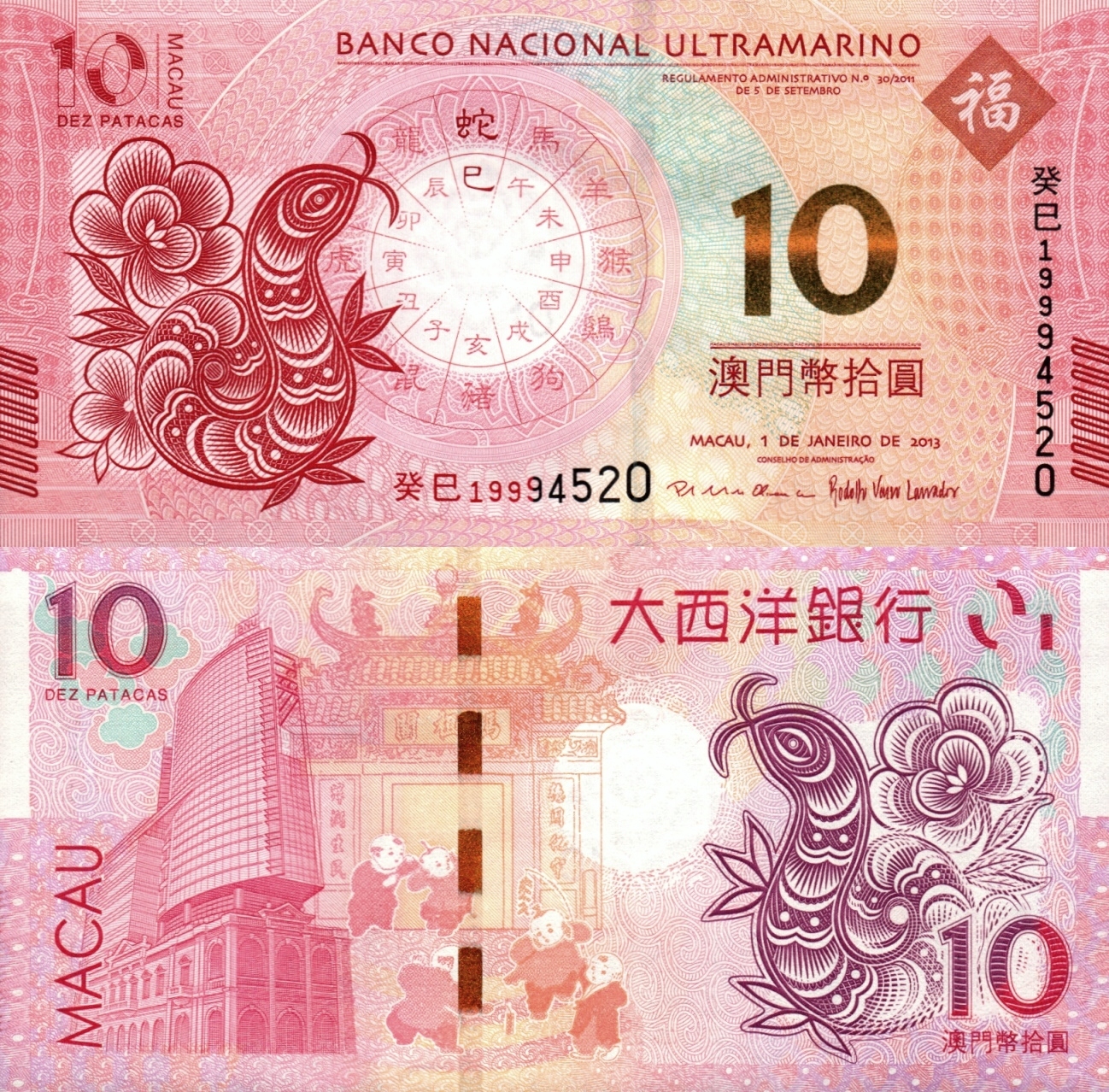 # МАКАО - 10 PATACAS - 2013 - P-86 - UNC