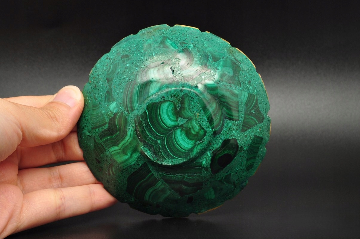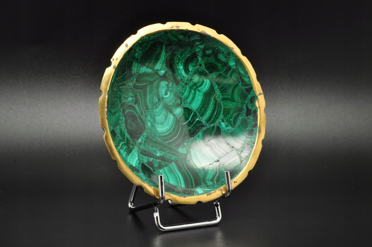 Малахіт - мінерал від групи карбонату. Він належить до звичайних і широко розповсюджених мінералів. Його найбільший і найвідоміший у світі - у Конго. Малахіт з давніх часів використовується як високо цінний декоративний камінь. До сьогодні він також використовується як ідеальний дуже привабливий декоративний, скульптурний та підложний покрив матеріал. Він також зазвичай використовується для виготовлення художніх прикрас та прикрас. Він також використовується для виробництва зелених фарб і барвників, а локально є джерелом отримання міді/містить приблизно. 57% Cu /. P>