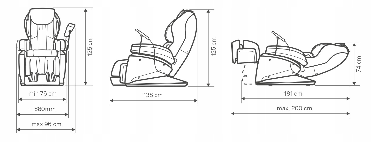 Вам цікаво, чи підійде масажне крісло в тому місці, яке ви для нього вибрали? Подивіться на малюнок нижче, який показує точні розміри крісла.