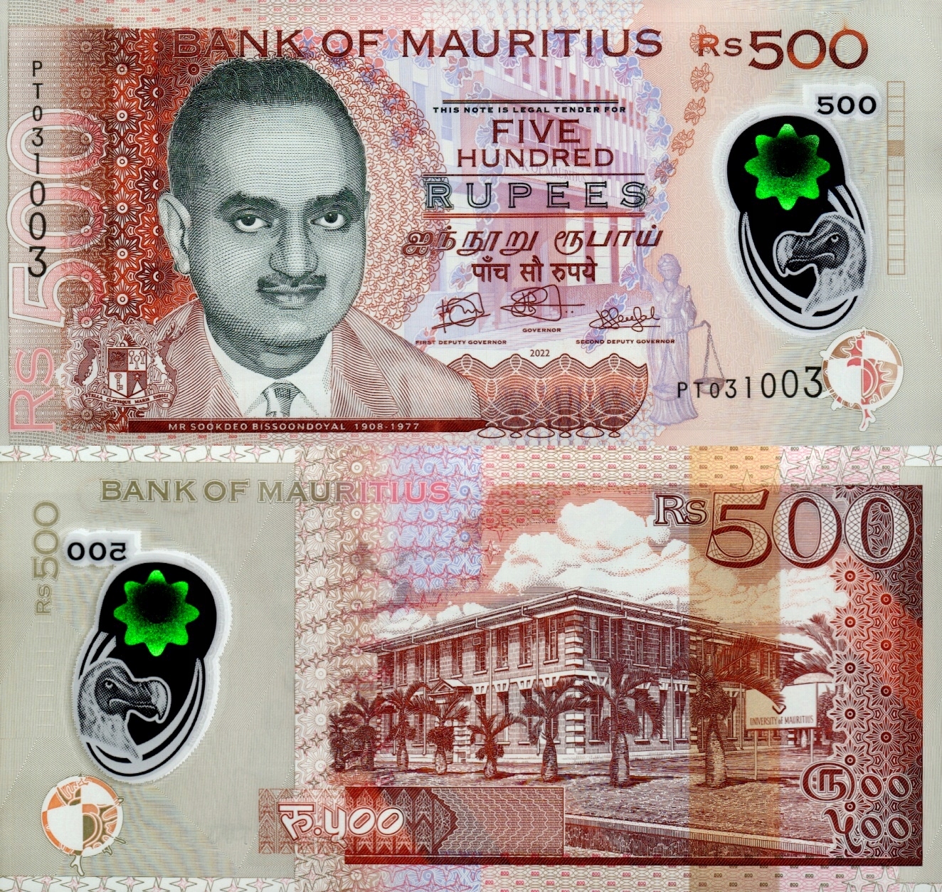 # МАВРІКІЙ - 500 РУПІЙ - 2022 - P-66e - полімер UNC
