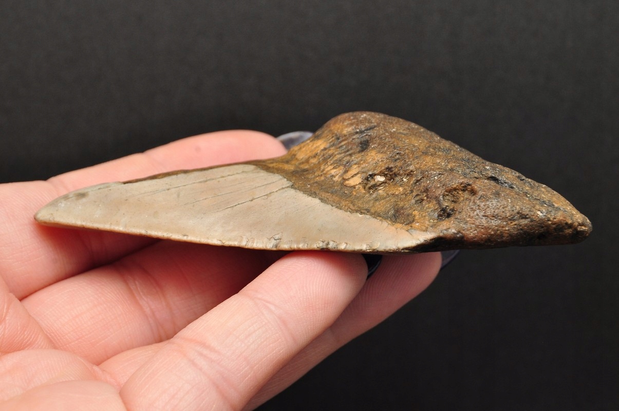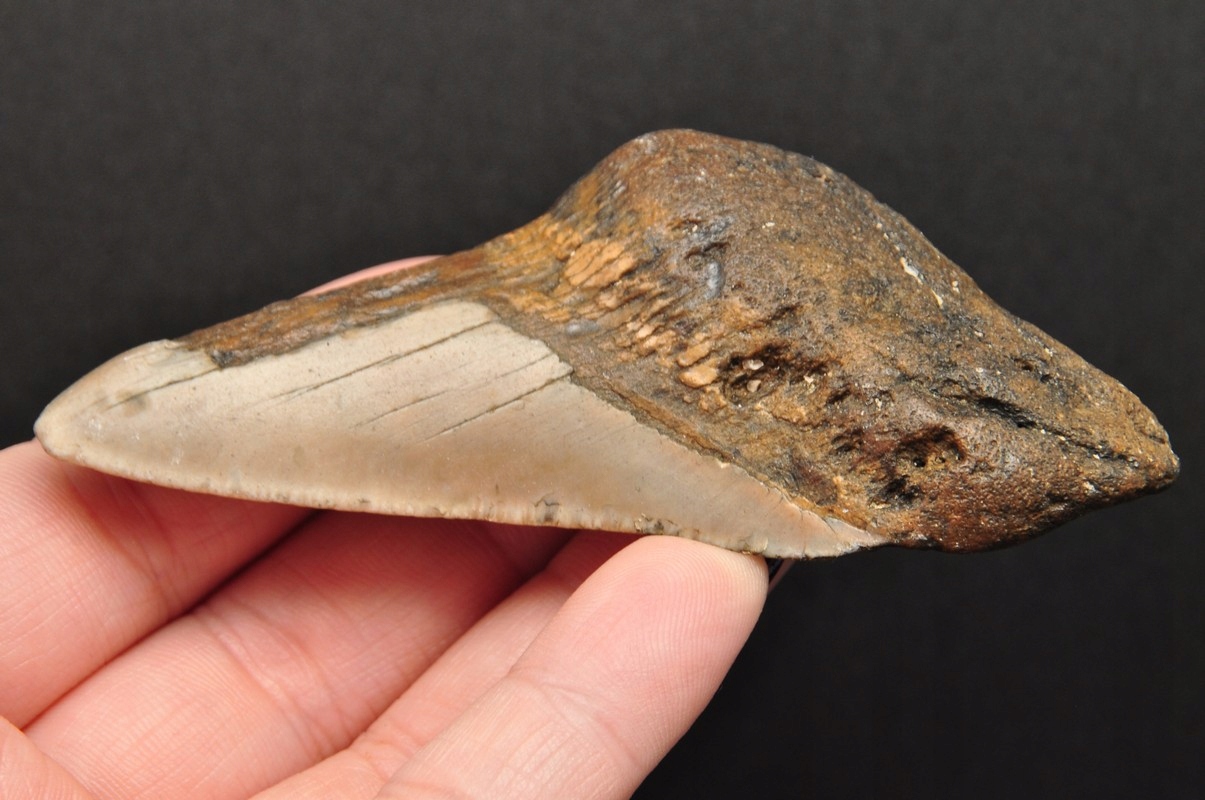 Дуже добре зберегла половина вимерлого зуба Мегалодона акули . 100 % оригінальна викопність до колекції та в подарунок.
