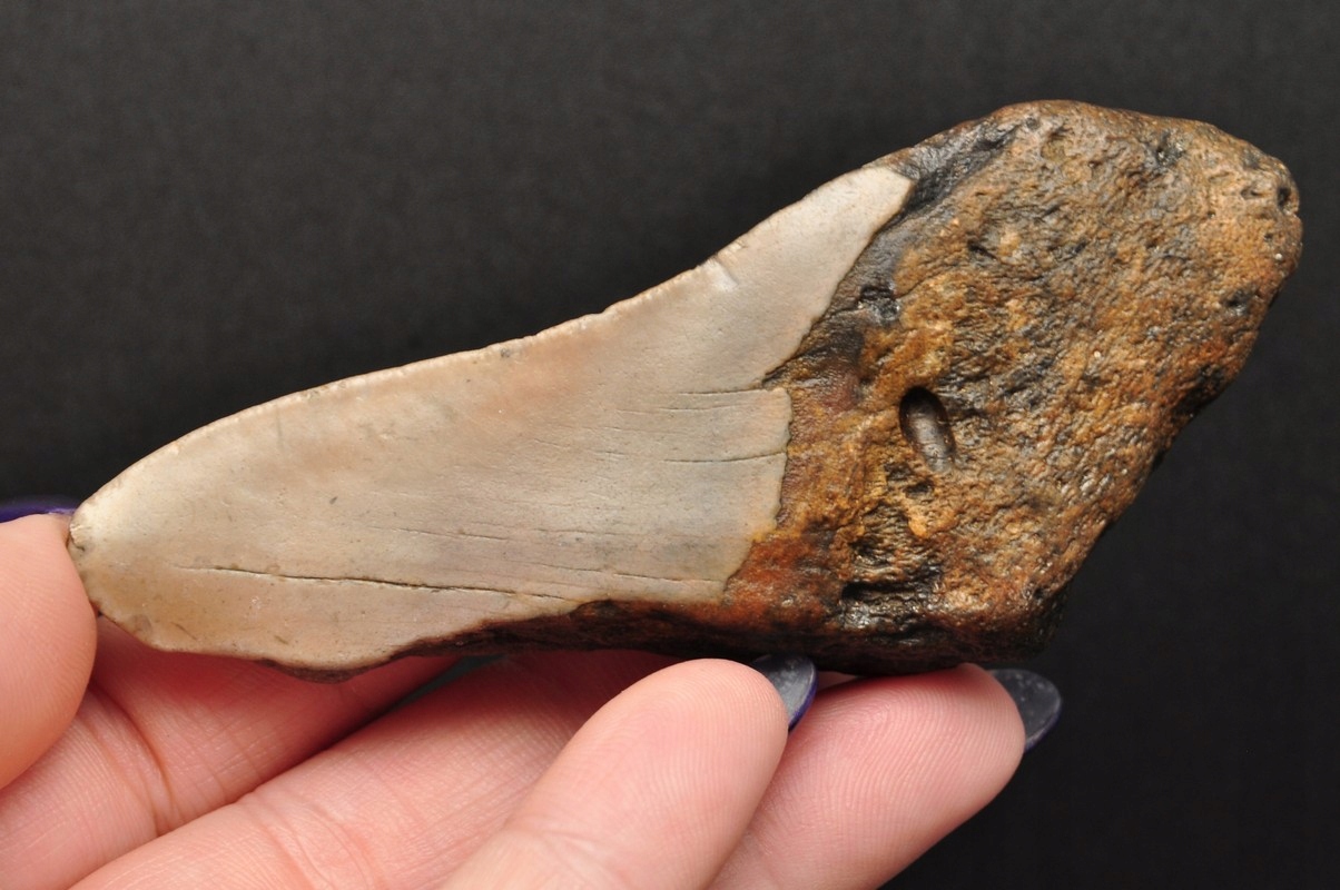 * Мегалодонова акула Склопізований зуб справжній унікальний зразок № 1 *