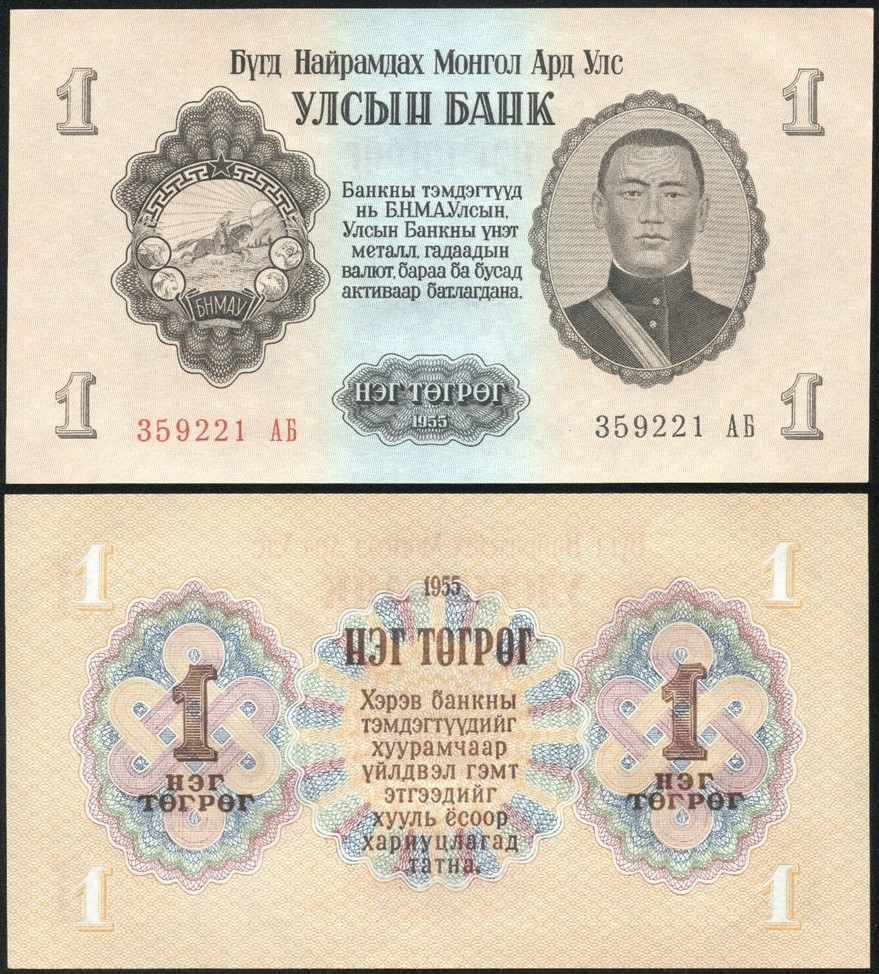 $ Mongolia 1 TUGRIK P-28 UNC 1955