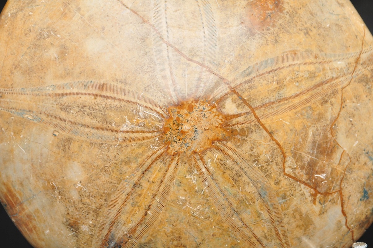 НАТУРАЛЬНИЙ SEURURCHIN PYGURUS MARMONTI (DOLLAR URICHIN). ЗРАЗОК ПОЛІРОВАНИЙ З ОДНОГО БОКУ. ДУЖЕ ДОБРЕ ЗБЕРЕЖЕНИЙ, ГАРНИЙ ДЛЯ КОЛЕКЦІЇ.