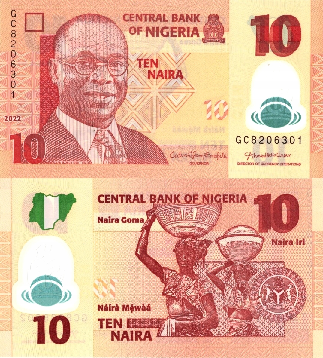 # НІГЕРІЯ - 10 НАІР - 2022 - P-39n (P-NEW) - полімер UNC
