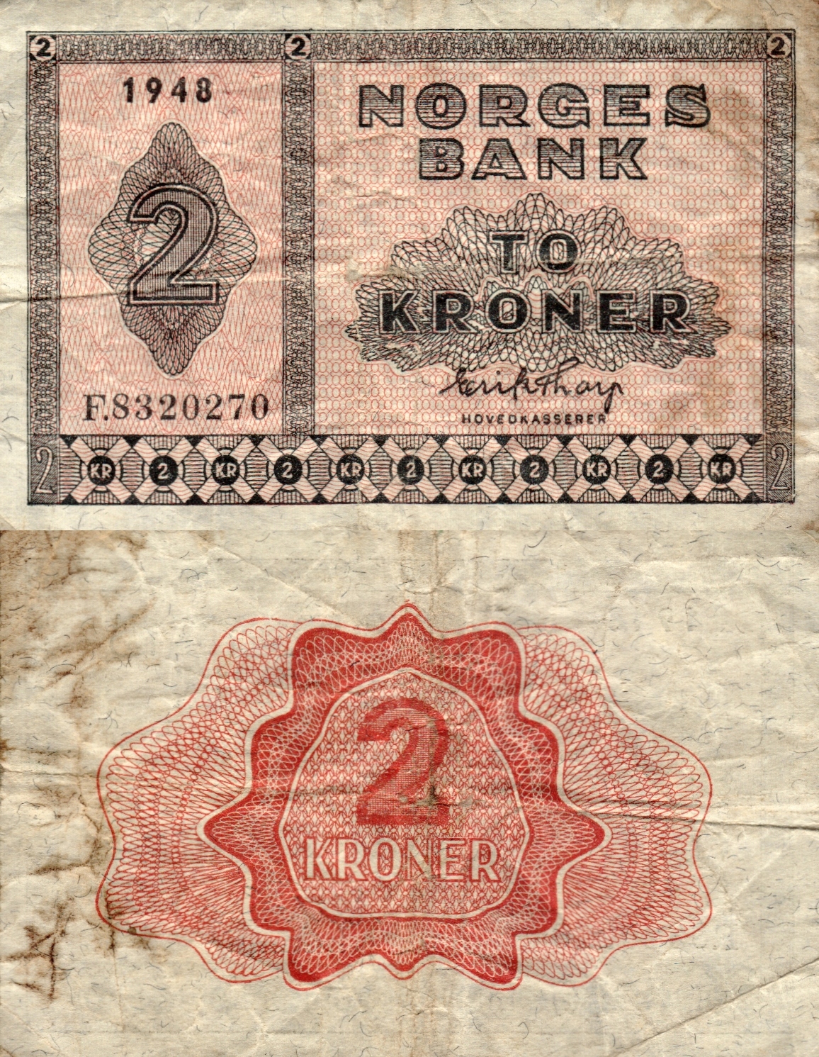# НОРВЕГІЯ - 2 КОРОНИ - 1948 - P-16b - F+