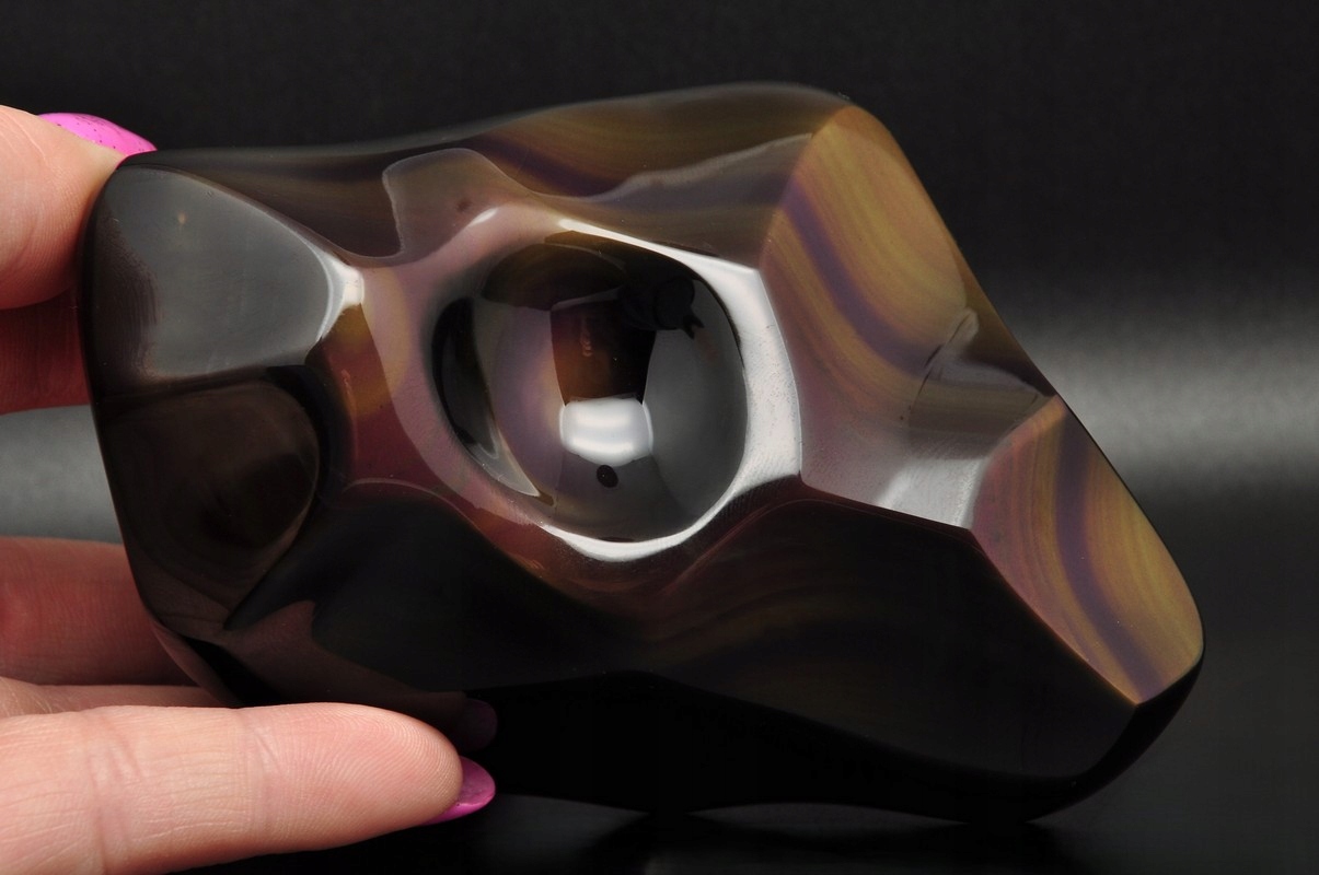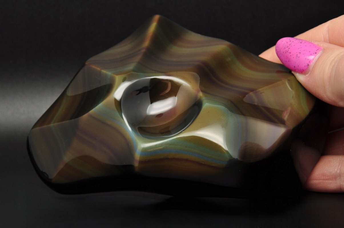 4 Натуральне скло виникає внаслідок негайного охолодження магми (лави). Хімічний склад (в основному кремній діоксид) пов'язаний з типом лави. Він перекристалізує, приймаючи зовнішній вигляд звичайної, тонкої скелі. Rainbow Obsidian - це різноманітний чорний обсидіан, який на його поверхні після полірування проявляється у щоденному світлі надзвичайно красиві кольори.