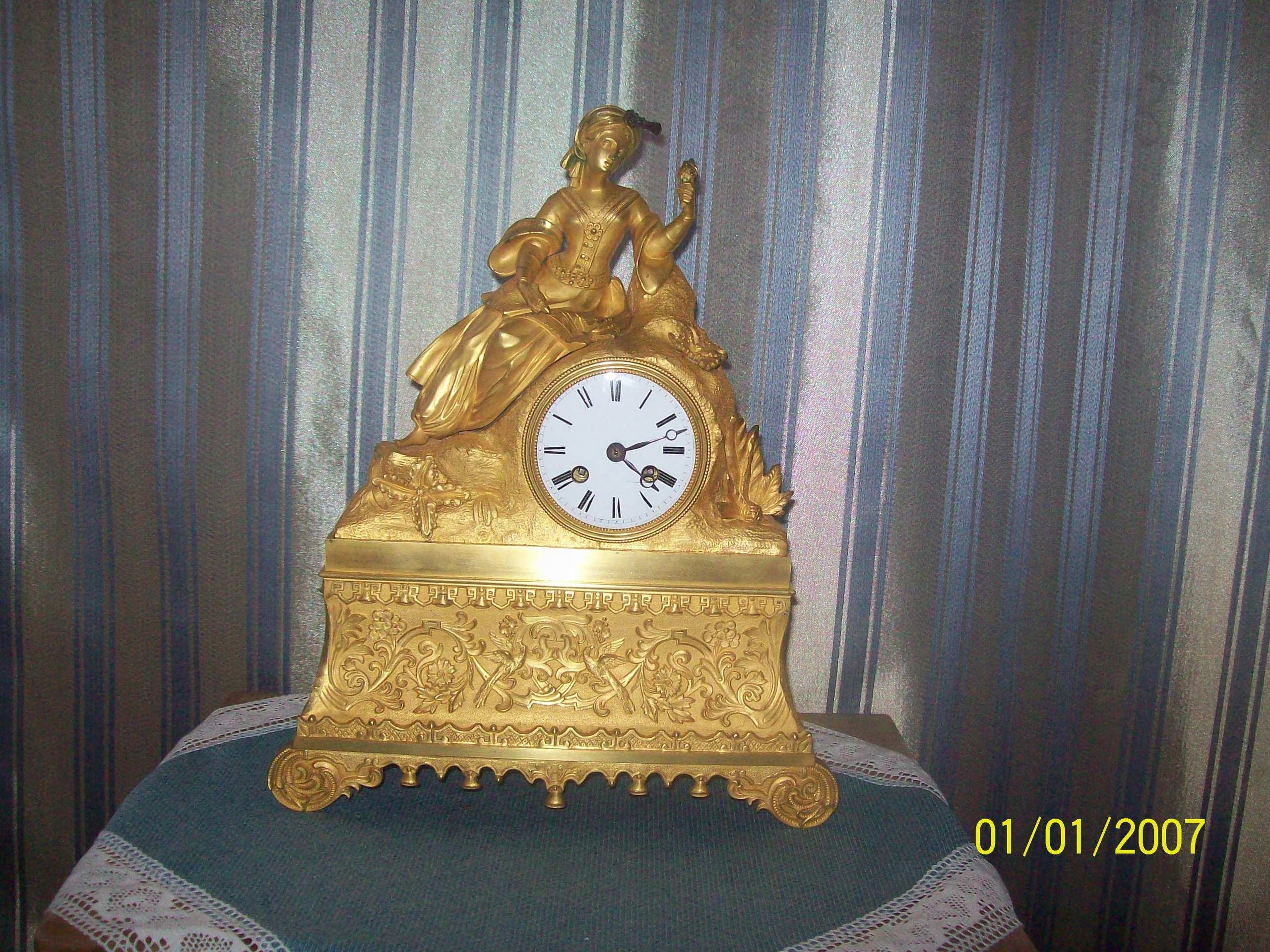 ---РАЗПРОДАЖ---ЯКЩО У ВАС Є ЗАПИТАННЯ--Я МОЖУ ЗРОБИТИ ГОРНУ ЦІНУ---ЗА--КУПИТИ-ЗАРАЗ---ПРОПОЗИЦІЯ---ПРОПОЗИЦІЯ----Продаю з приватної колекції 100% оригінальний красивий фігурний годинник камінна полиця з першої половини 19 століття - фігурна позолочена - майстерна точність позолоти та лиття, що надає їй додатковий клас - загальна висота 37 см - ширина 30 см - - має механізм все ще підписаний у темі - годинник зберігся в оригінальному вигляді та --- Дуже хороший стан - враховуючи його вік - годинник функціональний і повний. Чарівність і стан цього предмета найкраще видно на фотографіях - МОЖНА ДОСТАВКА НА ДОСТАВКА - якщо є запитання? ---694--35--42--59--- Питання до продавця--- нижче