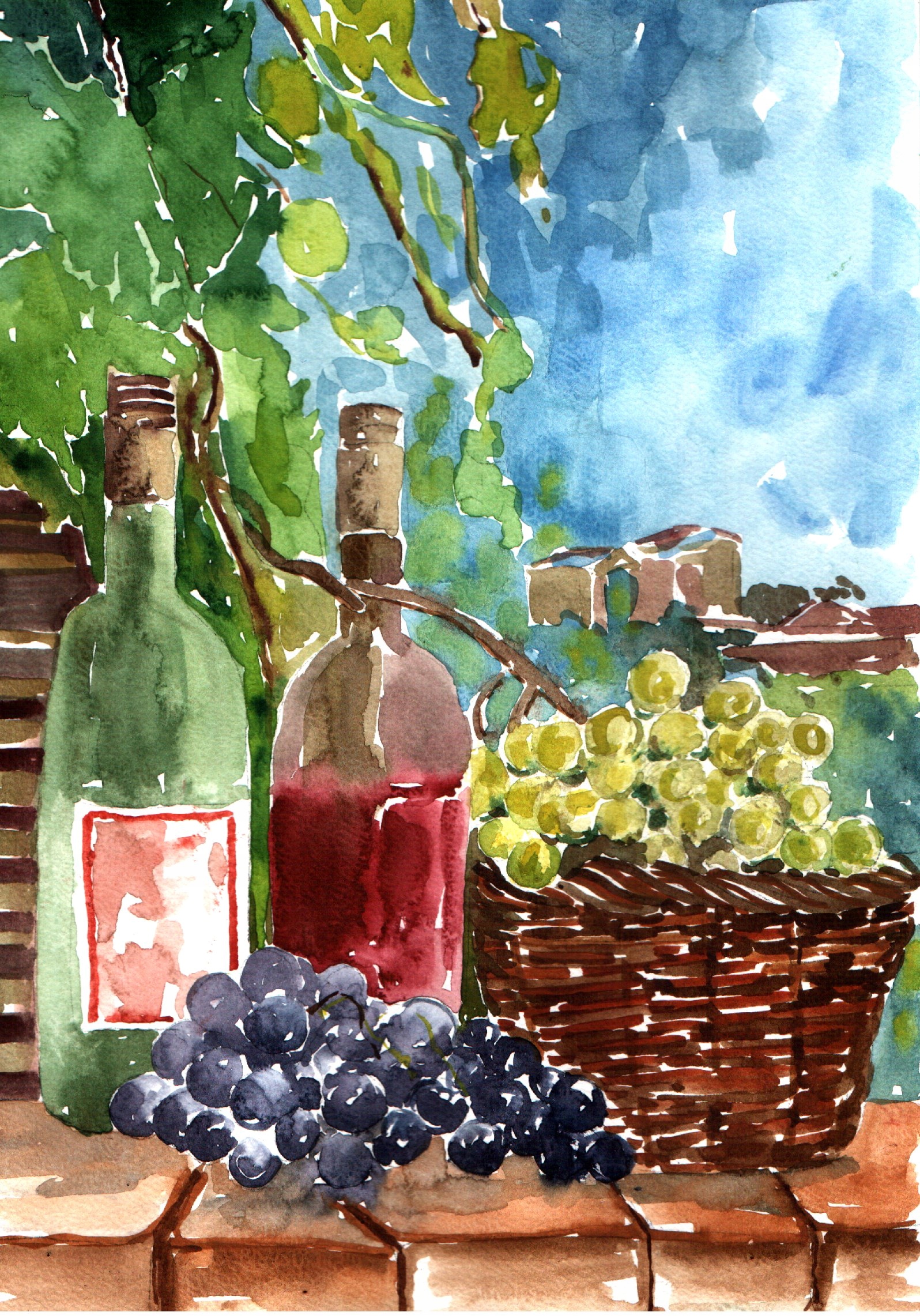 = Obraz =martwa natura=akwarela=owoce=