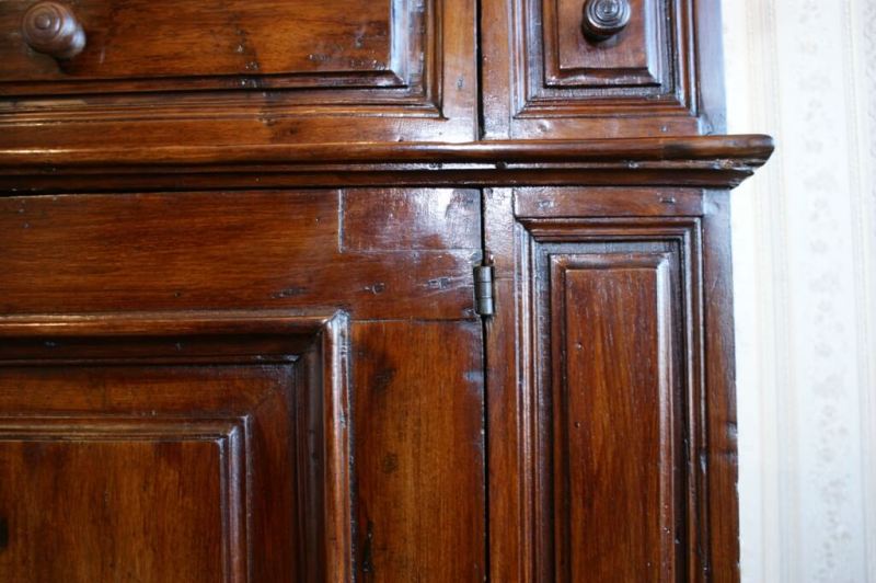 - з масиву горіха (стільниця, корпус, ящики, двері) , всі точені елементи, з’єднані дерев’яними шпильками;