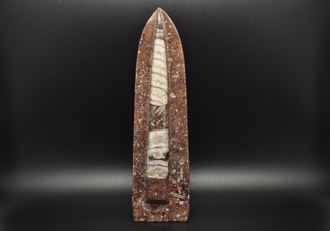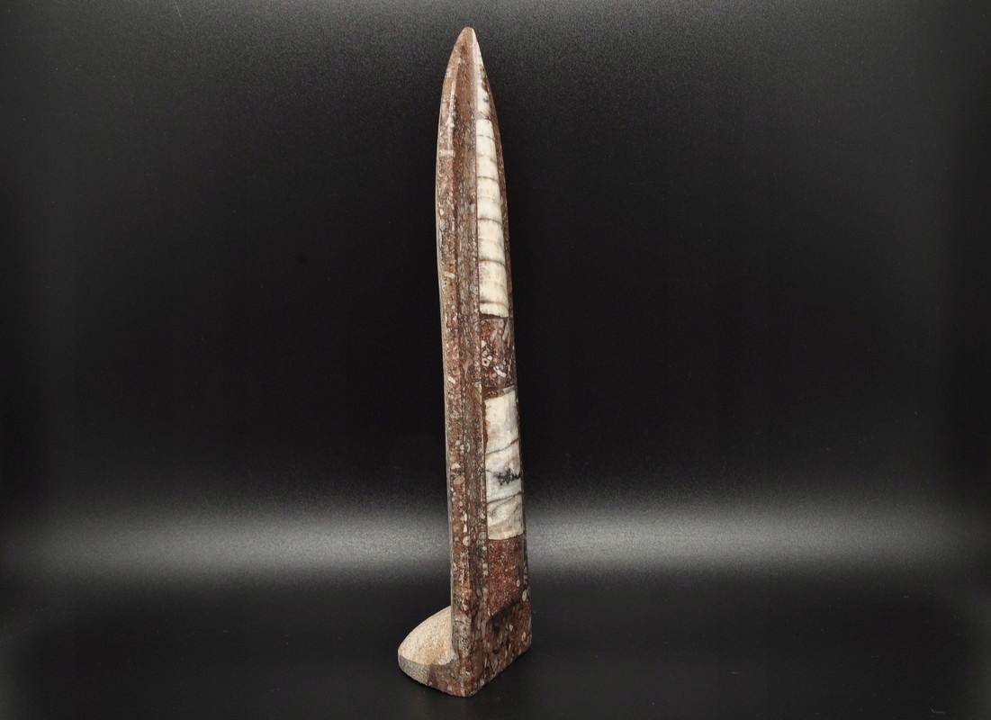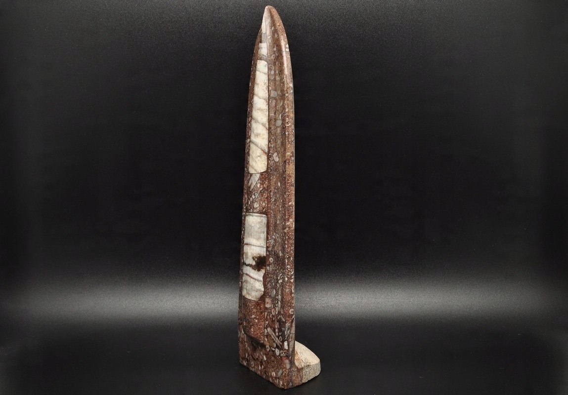 природна, відшліфована скеля з ортоцерами . Він має унікальну основу, завдяки якій вона стоїть автоматично. Супер якість, ідеальний зразок для збору.