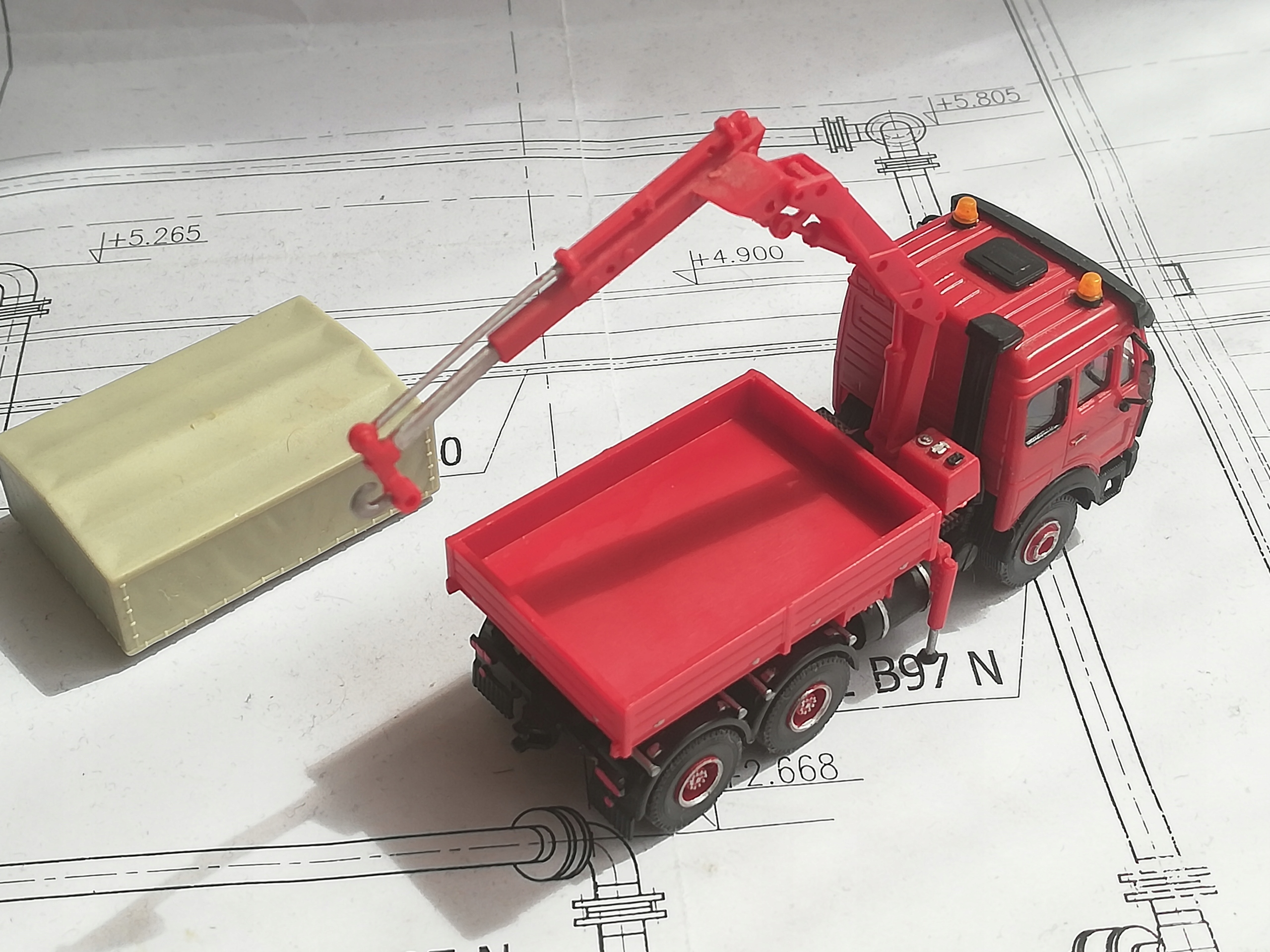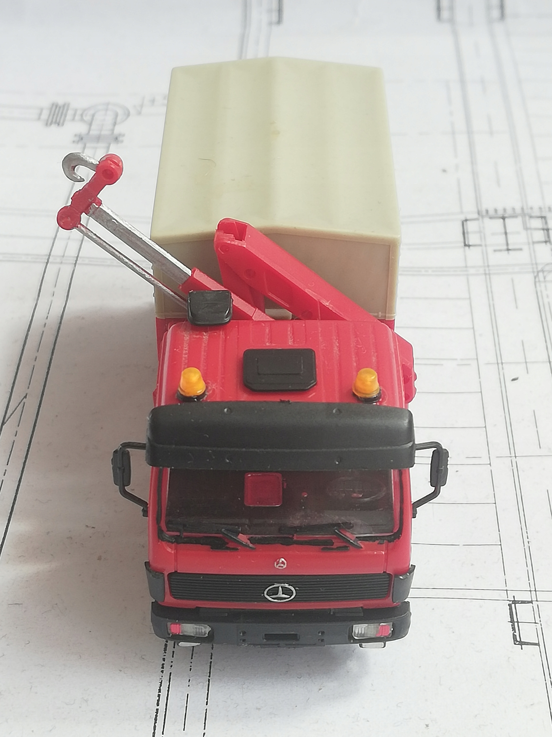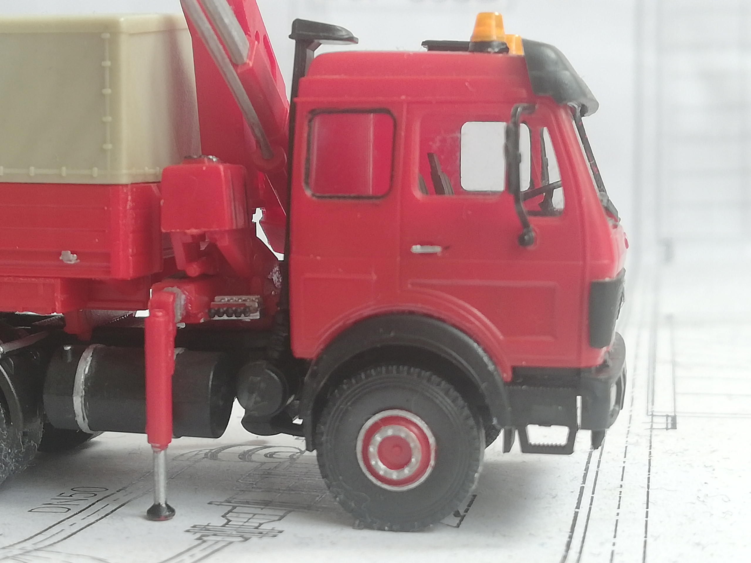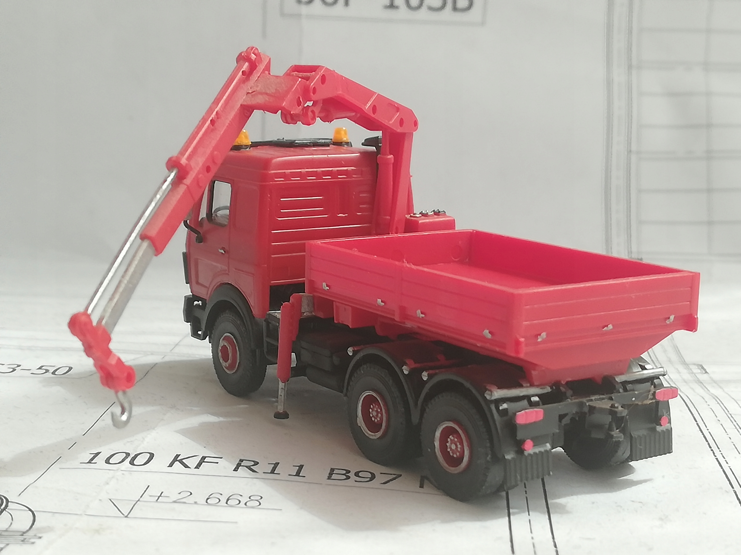 ...Баластний тягач Mercedes-Benz SK '88 з HDS, масштаб H0 (1:87). Модель Kibri. Клеєна модель, гарний стан. Дрібні елементи пофарбовані. Невеликі сліди клею в кількох місцях. Опори під HDS стаціонарно приклеєні (не вислизають). Наклеєні дзеркала. Упаковка для безпечного транспортування.