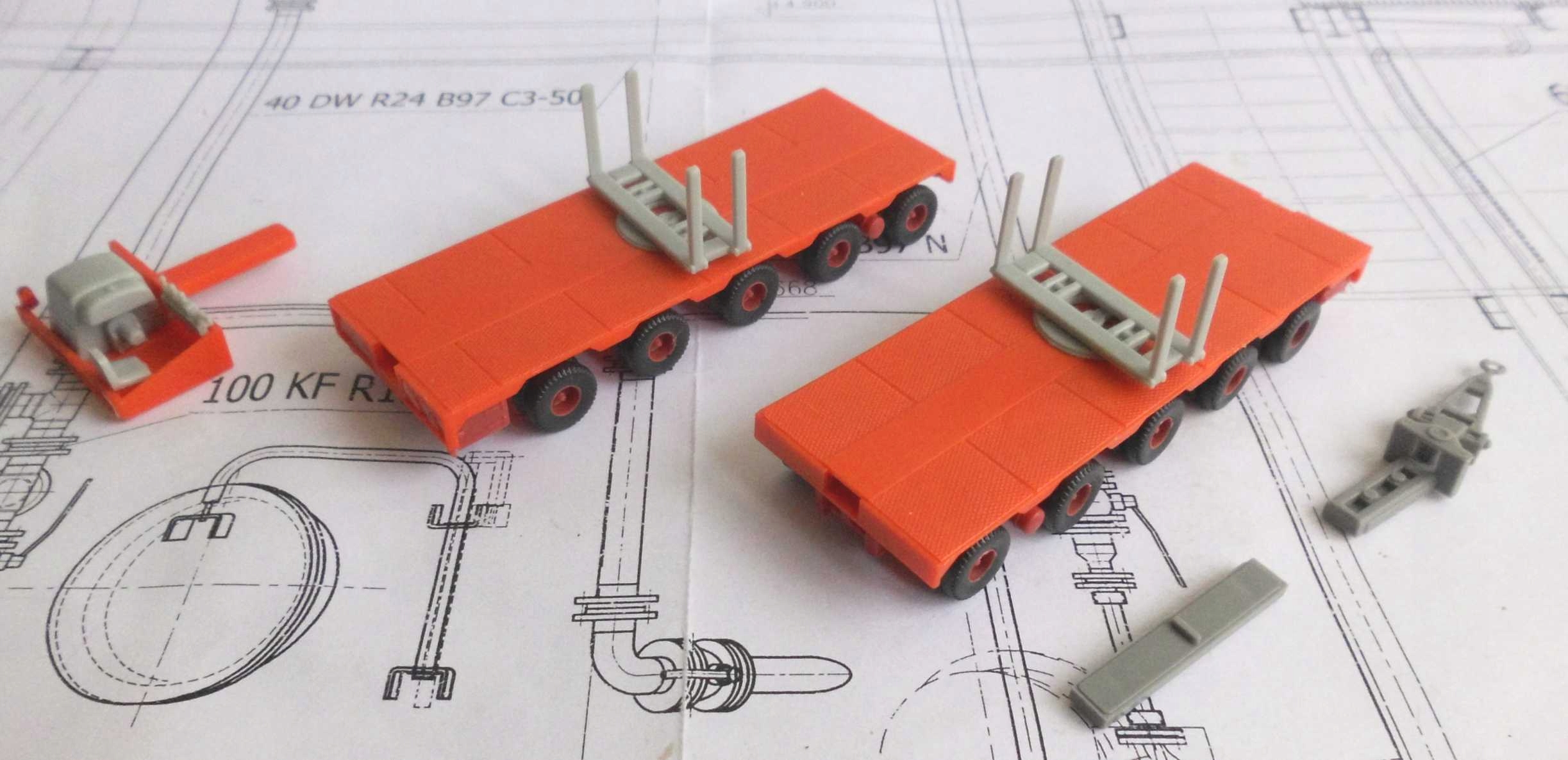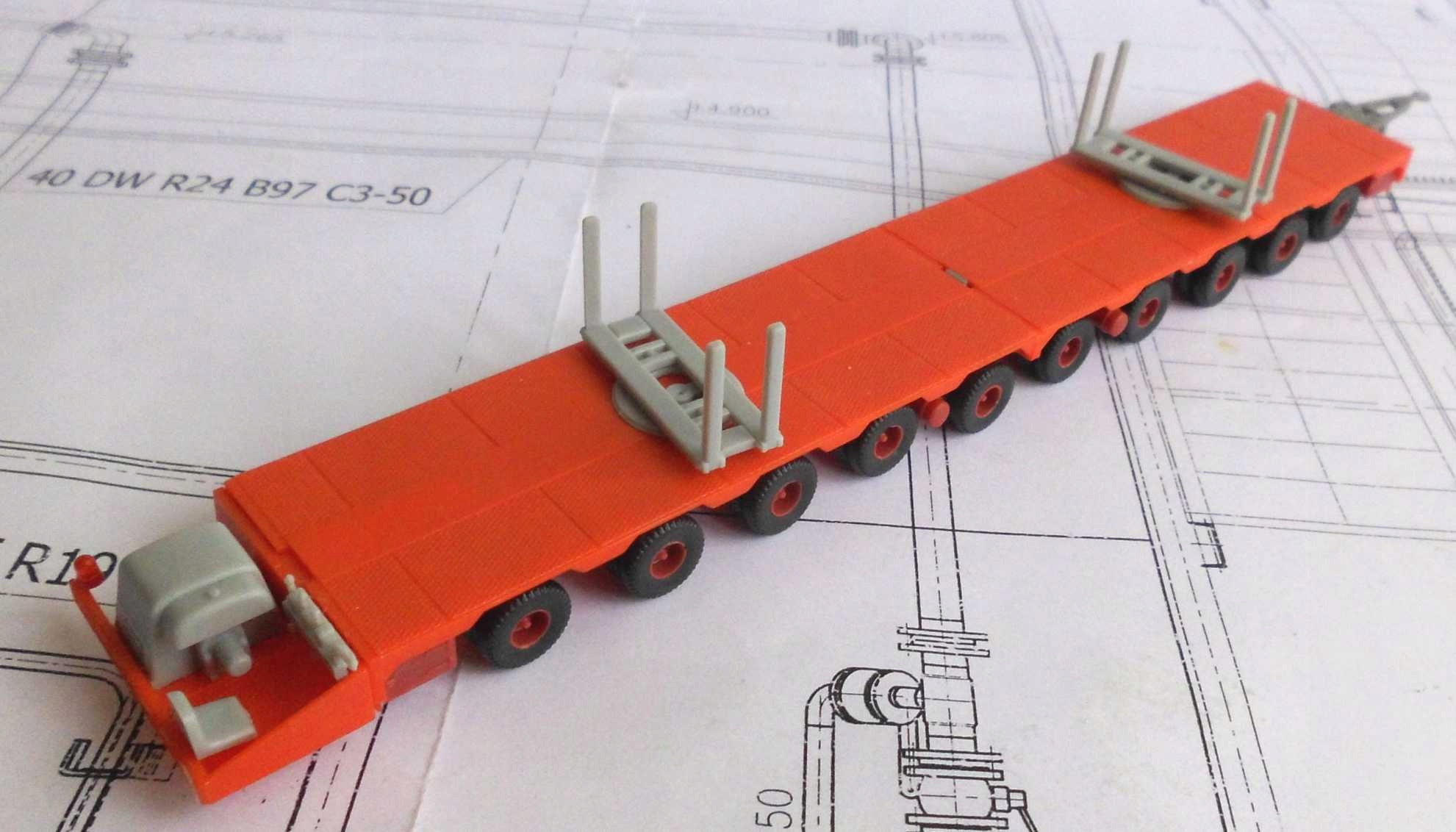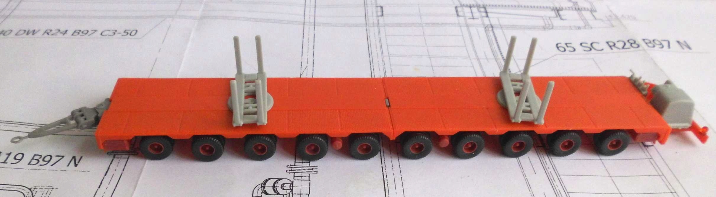 ...причіп-платформа низькорамна з поворотними стійками, масштаб H0 (1:87). Модель Kibri. Клеєна модель, дуже хороший стан з мінусом. У кількох місцях можуть бути незначні сліди клею. . Упаковка для безпечного транспортування.