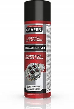 Засіб GRAFEN Professional - спрей для очищення деталей карбюратора, дроселів і витратомірів. Містить розчинники, які підвищують ефективність очищення продукту. Завдяки своїм властивостям легко наноситься, завдяки чому глибоко проникає в поверхню, видаляє гумку, осад і лак, які перешкоджають продуктивності. Він не пошкоджує датчики кисню або каталітичні нейтралізатори та забезпечує найбільш ефективне спалювання палива. Крім того, продукт можна наносити під будь-яким кутом (360 градусів).