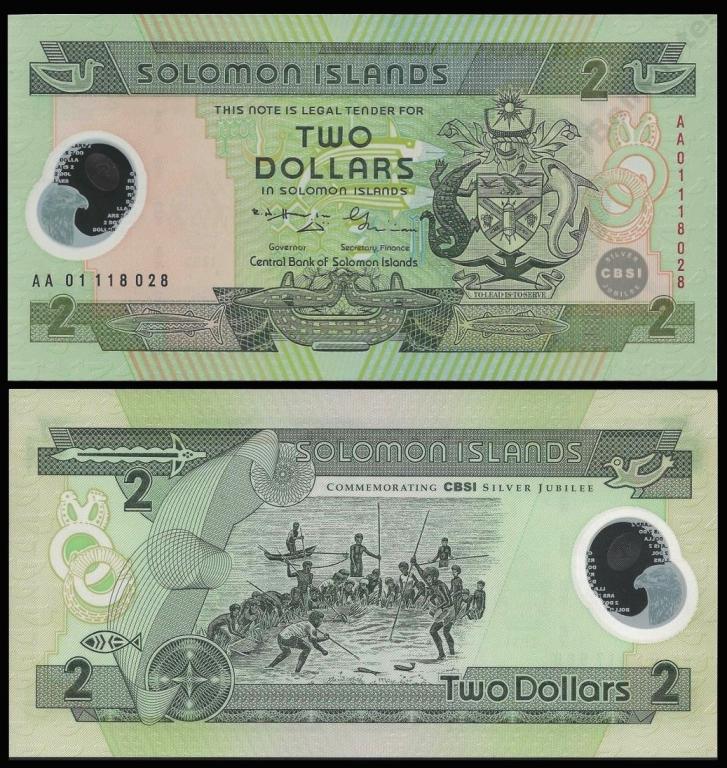 Тема цього аукціону - це прекрасна банкнота з Саломонських островів з номінальною номінальною номінальною, опублікованою в 2001 році як полімерна банкнота з нагоди Срібного ювілею CBSI (Центральний банк Соломонових островів). Через те, що це спеціальне видання (поруч із існуючою паперовою банкнотою), що випромінюється лише цього року, вартість колектора банкноти збільшується щороку. Я від душі рекомендую, практично нечувані на аукціонах!