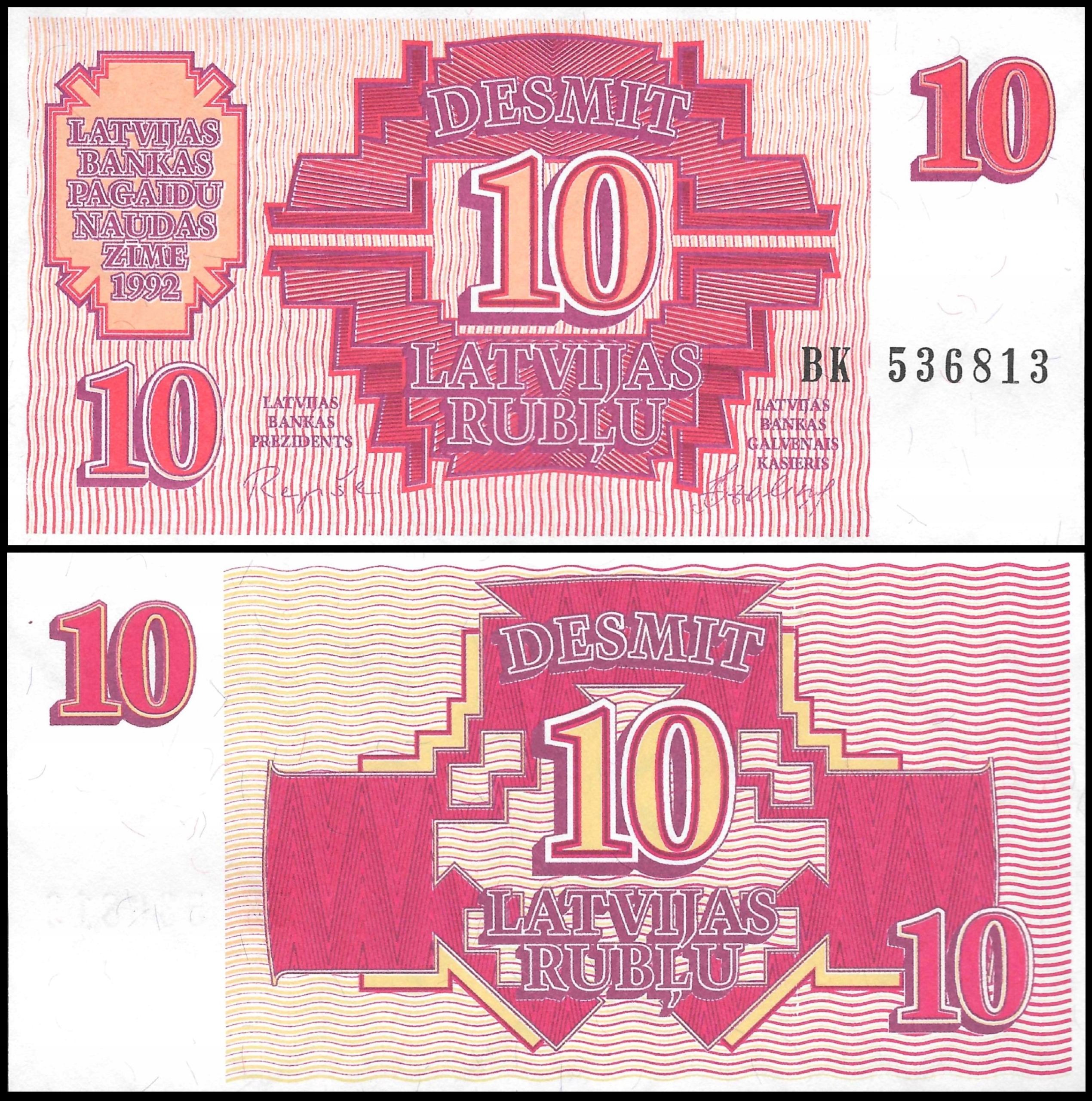 * ŁOTWA 10 rubli 1992 P- 38 ** stan UNC **
