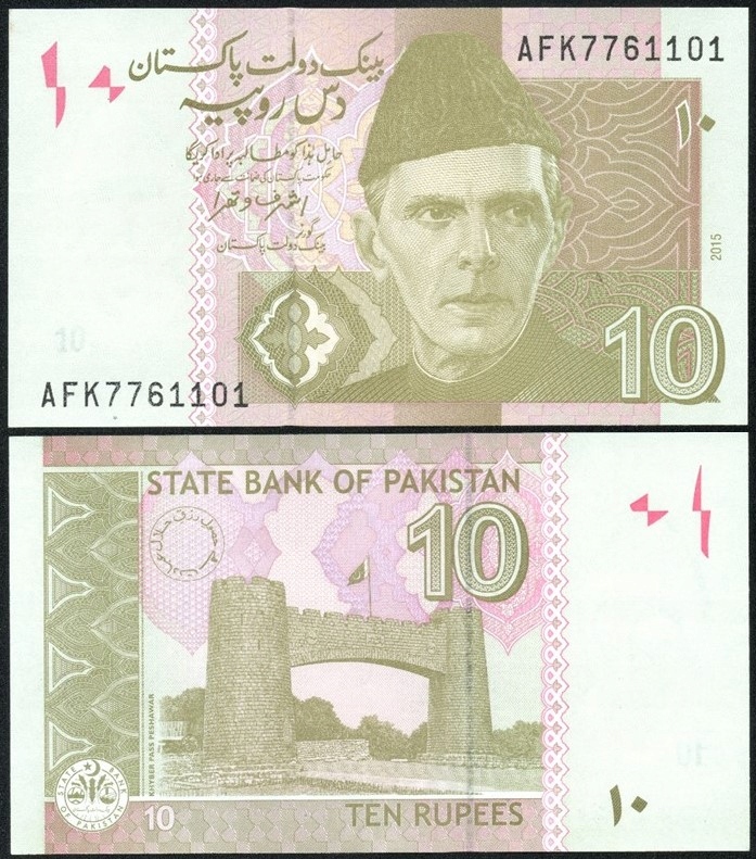 $ Пакистан 10 РУПІЙ P-45j UNC 2015