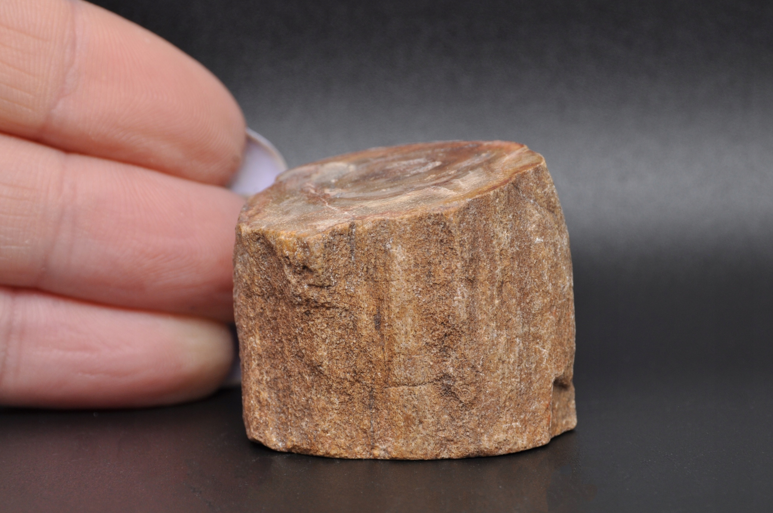 Пень із скам'янілого дерева полірований з одного боку. Дуже естетичний і експонований екземпляр. Вік дерева приблизно 180-200 мільйонів років, рубіж тріасу і юри. Скам'яніла деревина - це скам'янілі залишки деревини минулих геологічних періодів. Вони були збережені шляхом закопування деревини в осад, а потім заміни вихідної органічної речовини кремнеземом (халцедон або опал) із розчинів, що циркулювали в осаді. У цьому процесі часто зберігаються всі деталі деревини та її структура.