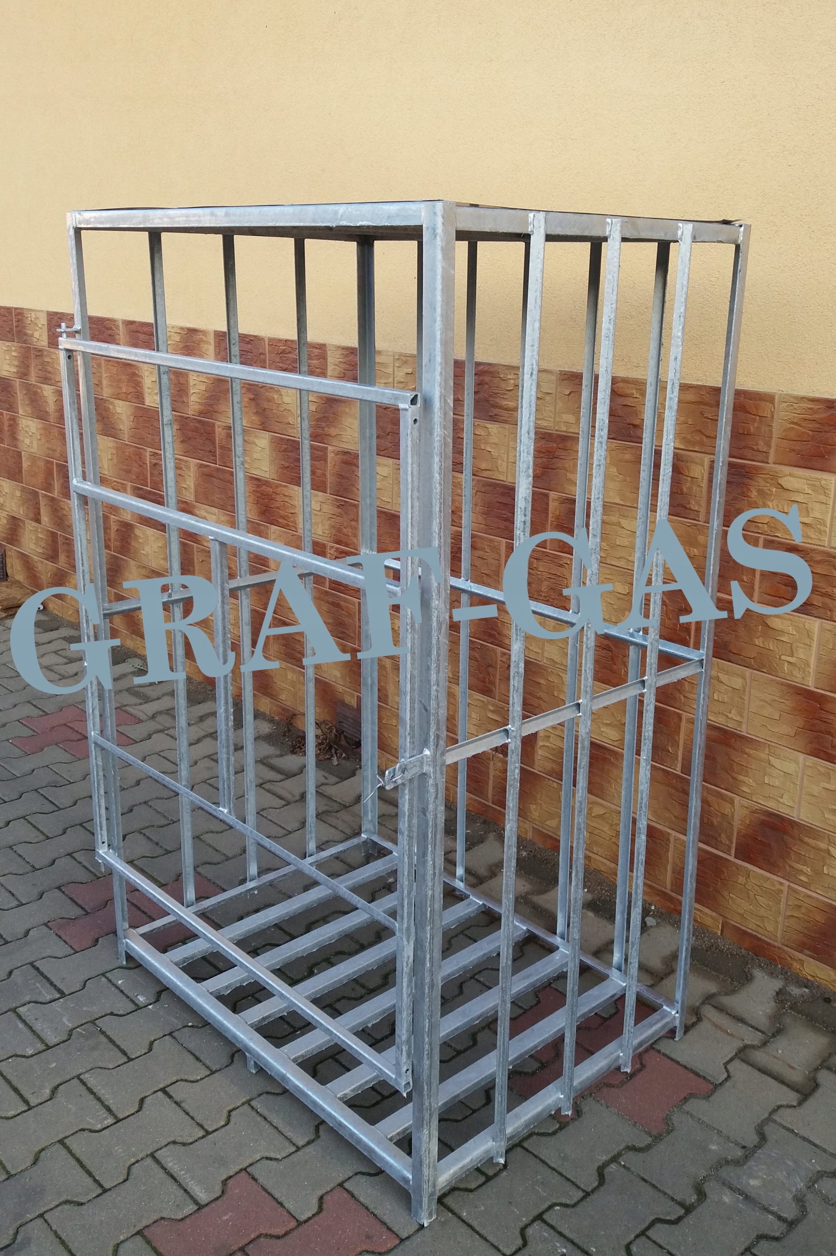 Контейнери виготовлені із сталевих куточків, коробка дверей із закритого профілю. Сталевий контейнер зварний та/або гарячеоцинкований, що гарантує довговічність та стійкість до погодних умов. Ємності оснащені дахом з плоского або гофрованого листа металу. Вони також мають протилежні дверні петлі та можливість встановлення навісного замка для захисту від сторонніх осіб. Контейнери дуже добре демонструють балони і чудово виглядають на торгових точках і АЗС.