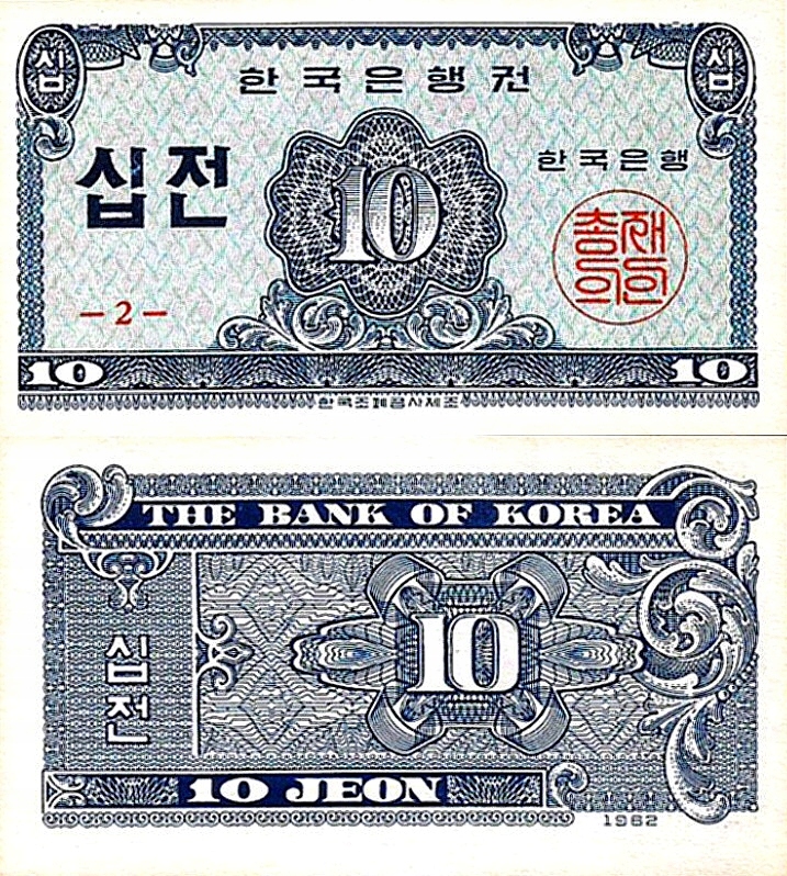 # ПІВДЕННА КОРЕЯ - 10 JEON - 1962 - P-28 - UNC